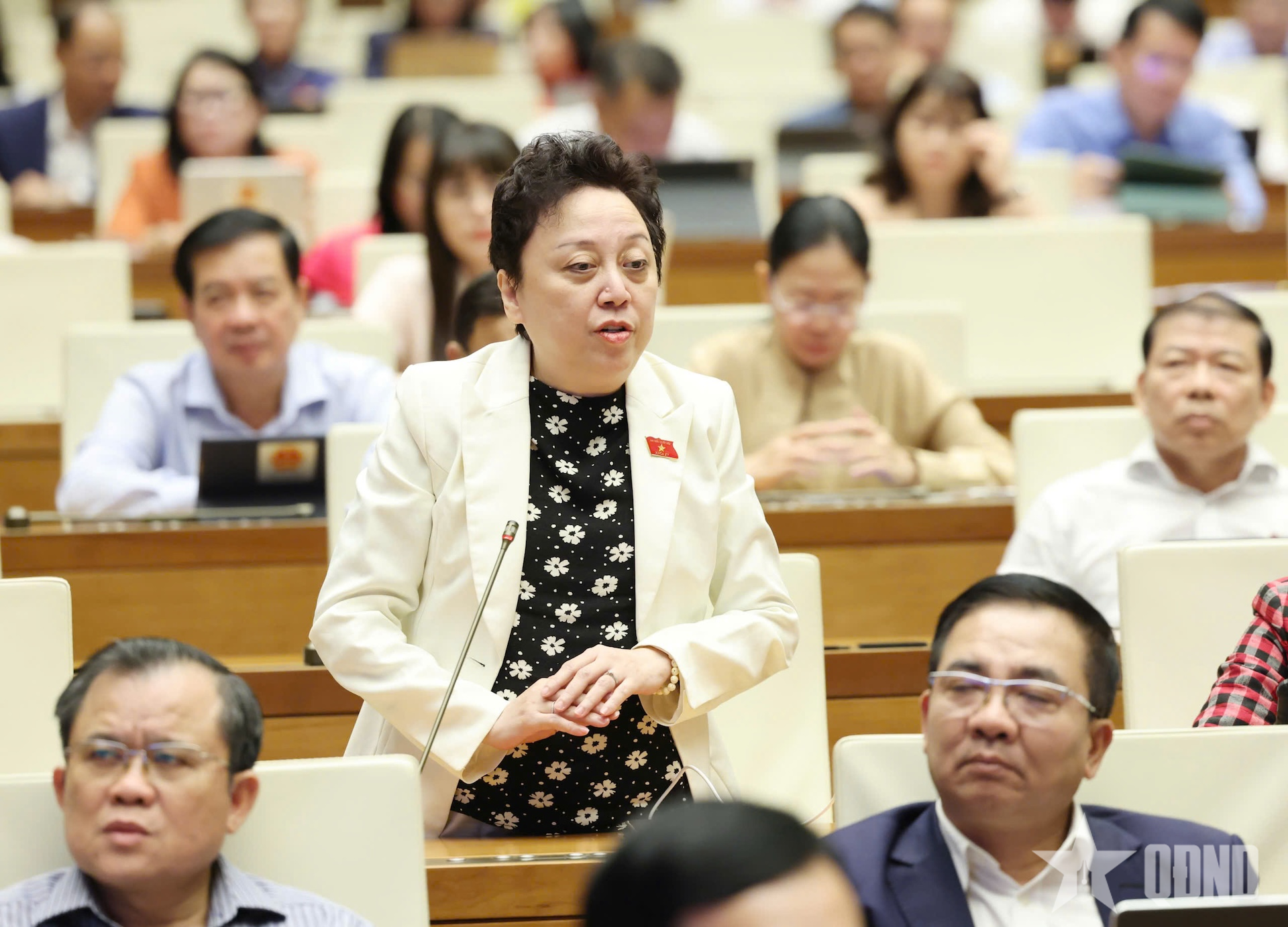Đại biểu Phạm Khánh Phong Lan (đoàn TP Hồ Chí Minh) nêu thực tế môi trường làm việc của nhân viên y tế chưa được bảo đảm, thực tế cũng chưa có chính sách cụ thể và quyết liệt cho vấn đề này. Trong khi đáng buồn là tình trạng bạo hành, bạo lực trong các cơ sở y tế đã xảy ra nhiều trong những năm gần đây. “Chúng ta rất cần những giải pháp căn cơ để có một môi trường bảo đảm về an toàn, các điều kiện chuyên môn cũng như đãi ngộ cho nhân viên y tế. Có như vậy thì mới phục vụ người dân được tốt hơn”, đại biểu Phạm Khánh Phong Lan nhấn mạnh.