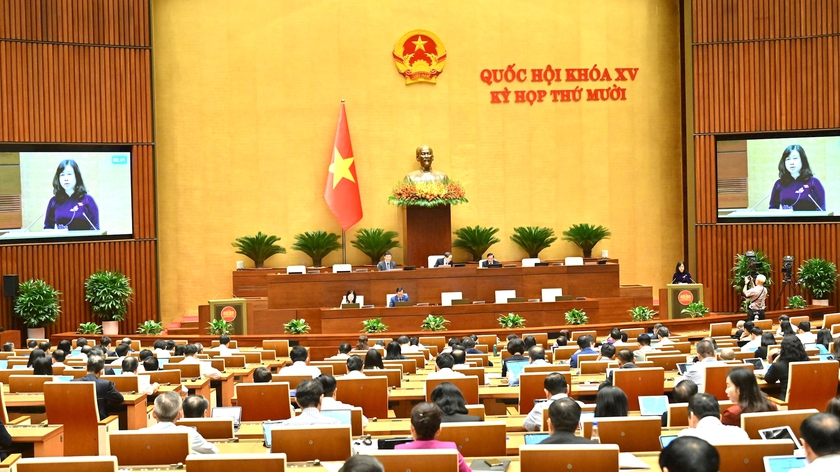 Sáng 23/10, tại nghị trường Quốc hội, Bộ trưởng Y tế Đào Hồng Lan thừa ủy quyền của Thủ tướng trình Quốc hội dự án Luật Dân số.