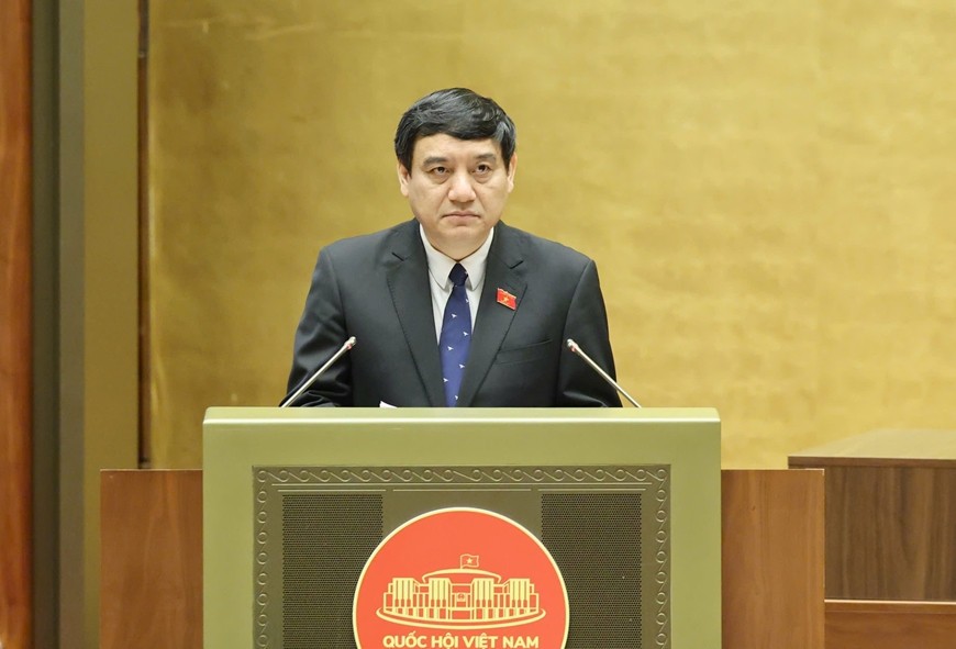 Chủ nhiệm Ủy ban Văn hóa và Xã hội của Quốc hội Nguyễn Đắc Vinh trình bày báo cáo thẩm tra. Ảnh: TRỌNG HẢI