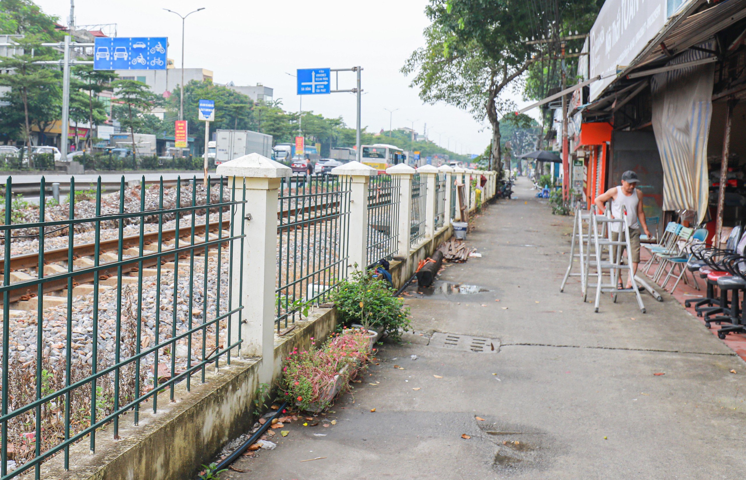 Đường gom - hàng rào tuyến Gia Lâm - Hải Phòng ở Long Biên (Hà Nội) đã xóa lối đi tự mở (Ảnh: Tạ Hải).