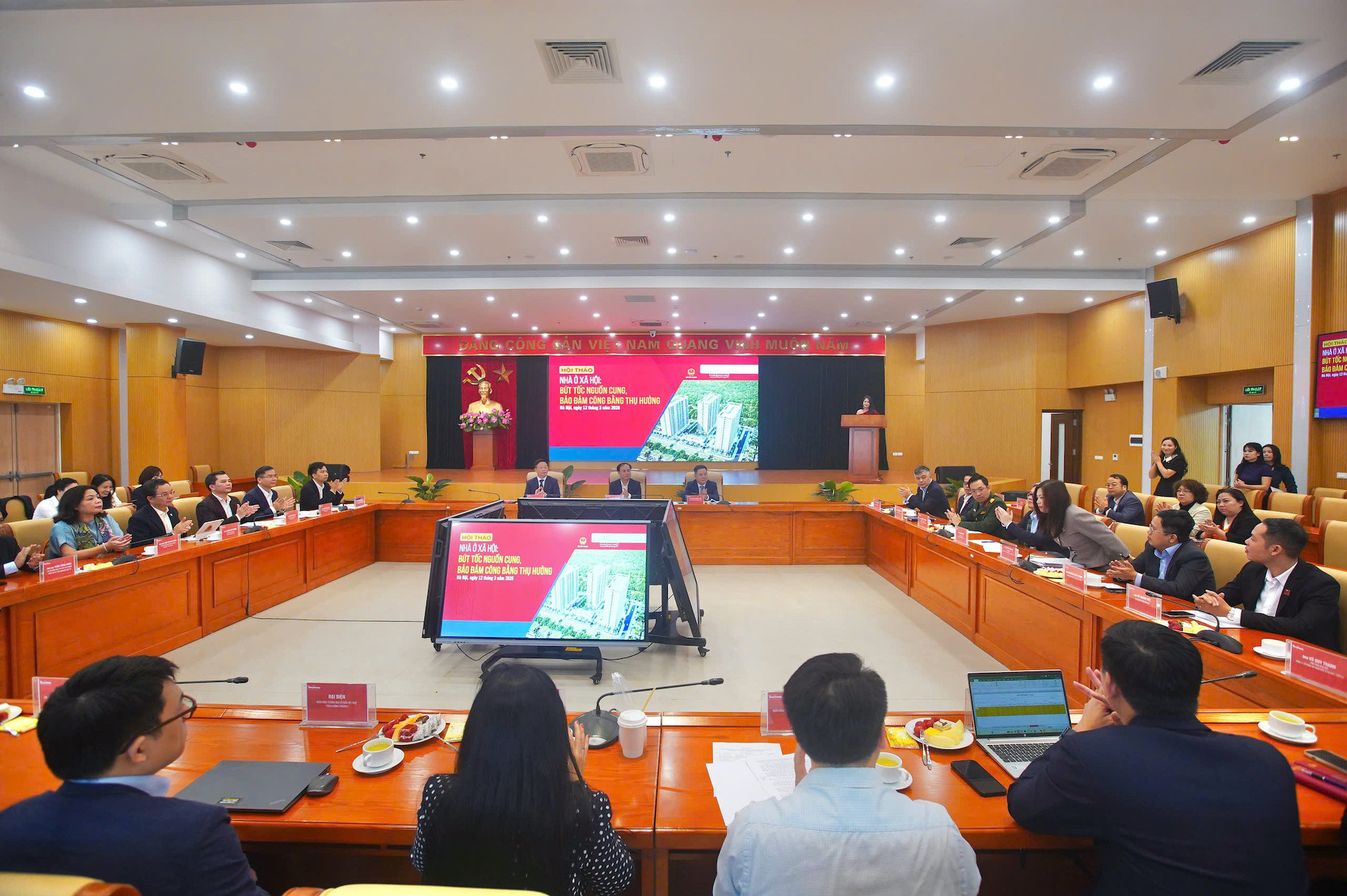 Hội thảo “Nhà ở xã hội: Bứt tốc nguồn cung, đảm bảo công bằng thụ hưởng” ngày 12/3. Ảnh: T.P