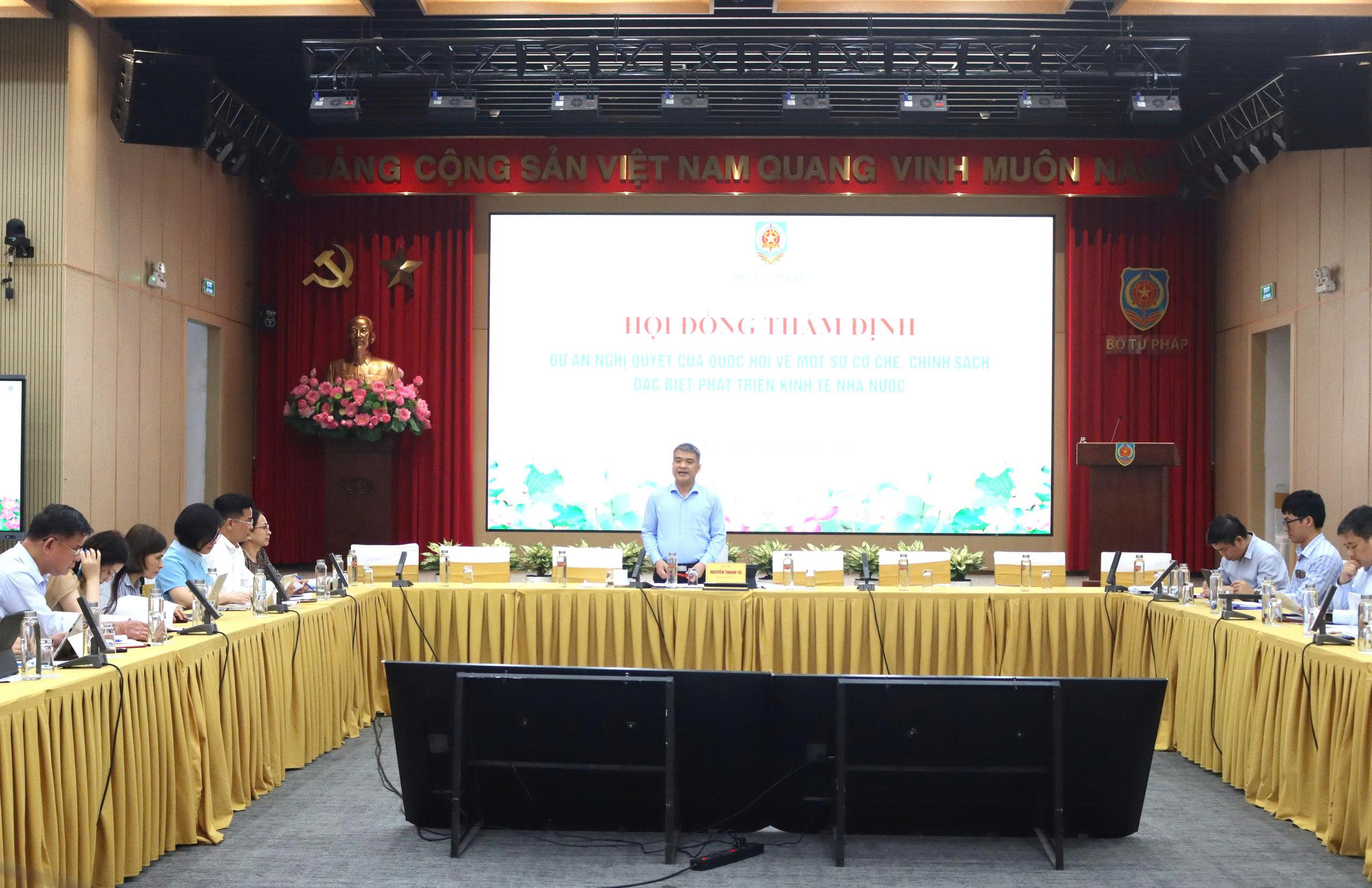Chiều 7-4, Thứ trưởng Bộ Tư pháp Nguyễn Thanh Tú chủ trì Hội đồng thẩm định dự án Nghị quyết của Quốc hội về một số cơ chế, chính sách đặc biệt phát triển kinh tế Nhà nước.