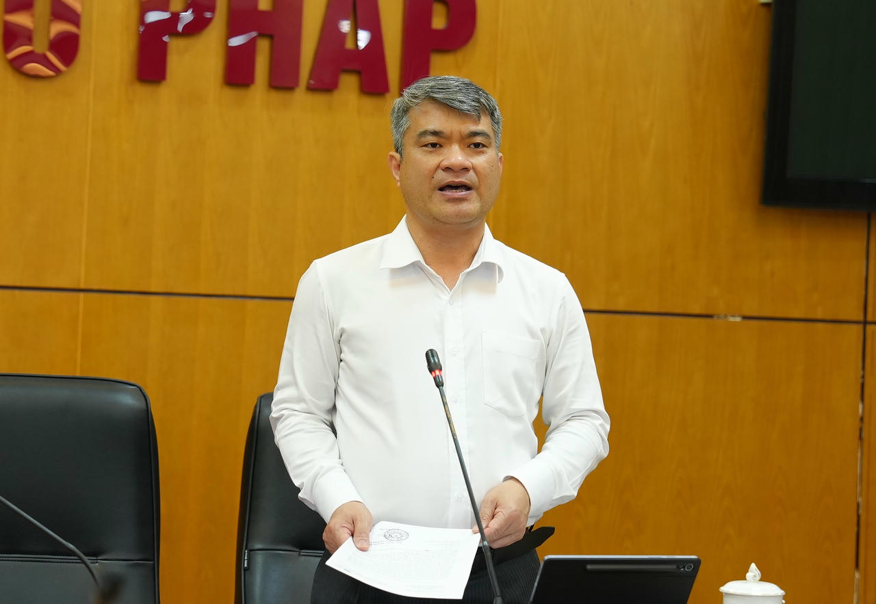 Thứ trưởng Bộ Tư pháp Nguyễn Thanh Tú phát biểu kết luận phiên họp Hội đồng thẩm định. Ảnh: H.Mây.