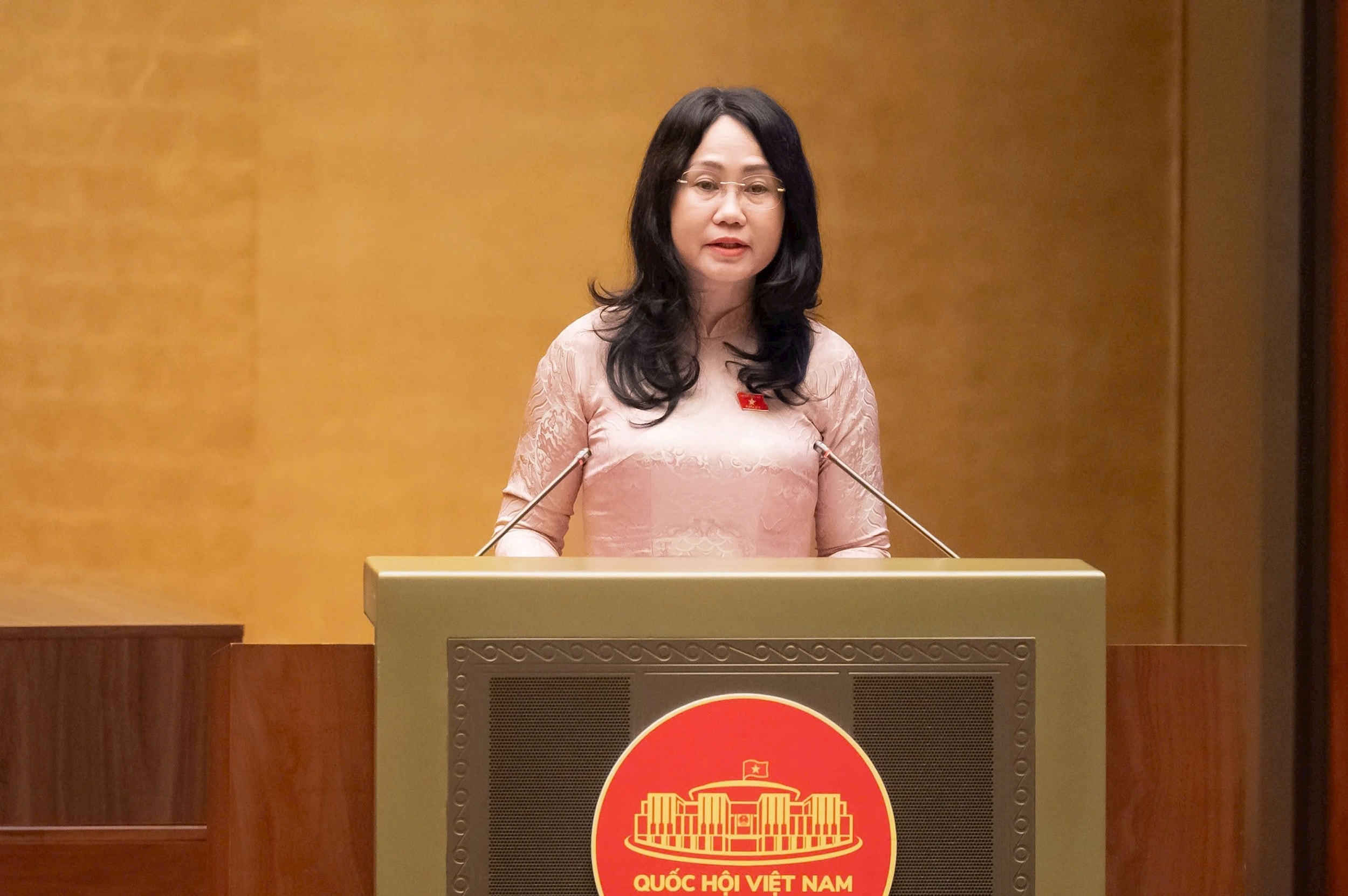 Bộ trưởng Bộ Văn hóa, Thể thao và Du lịch Lâm Thị Phương Thanh trình bày tờ trình. Ảnh: media.quochoi.vn