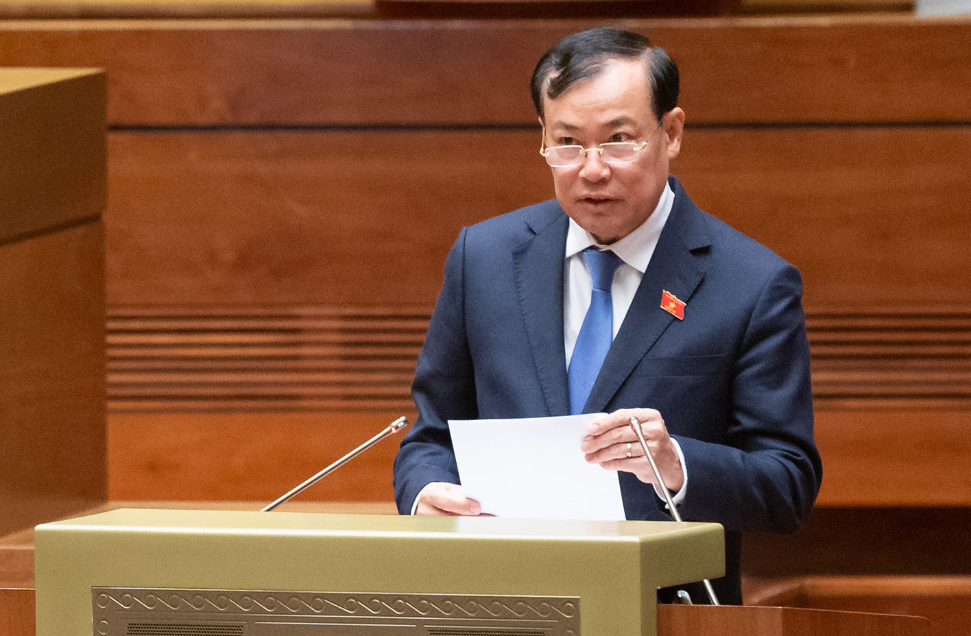 Bộ trưởng Bộ Công an Lương Tam Quang trình bày tờ trình.