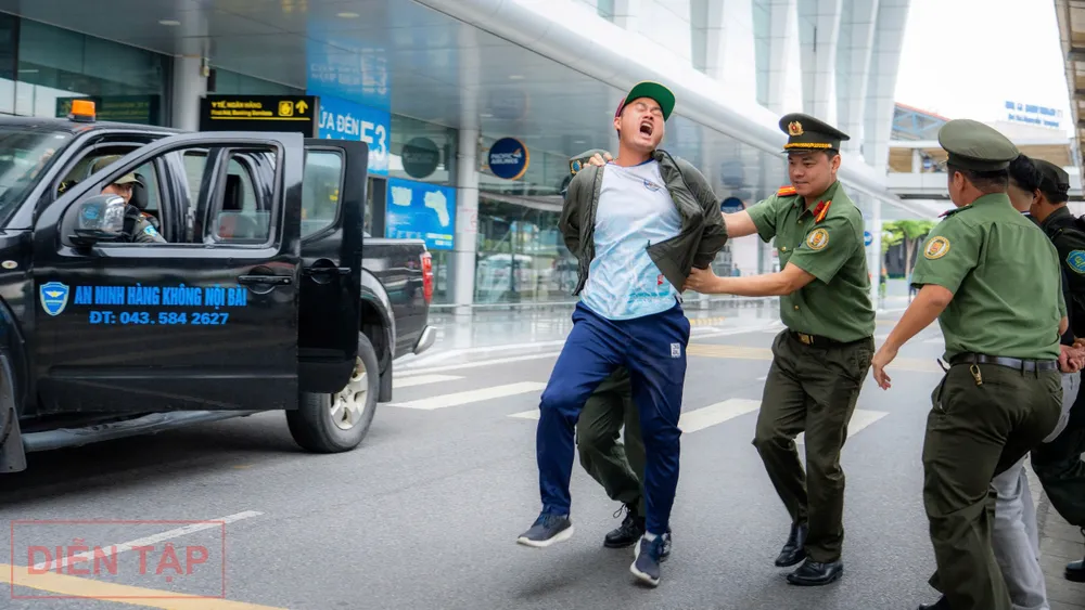 Lực lượng công an diễn tập trấn áp tội phạm ở sân bay Nội Bài. Ảnh: V.LONG