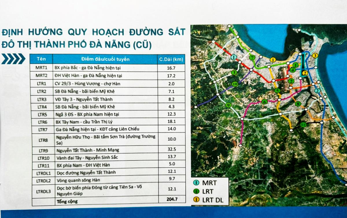 Báo cáo tại cuộc họp, Giám đốc Sở Xây dựng TP Nguyễn Hà Nam cho biết, theo quy hoạch đến năm 2030, tầm nhìn đến năm 2050, toàn TP có 3 tuyến MRT, 12 tuyến LRT và 3 tuyến LRT phục vụ du lịch với tổng chiều dài khoảng 283km. Sở Xây dựng TP đề xuất ưu tiên đầu tư trước 2 tuyến đường sắt đô thị, gồm có: tuyến nối từ Sân bay Quốc tế Đà Nẵng – Hội An – Tam Kỳ - Chu Lai.