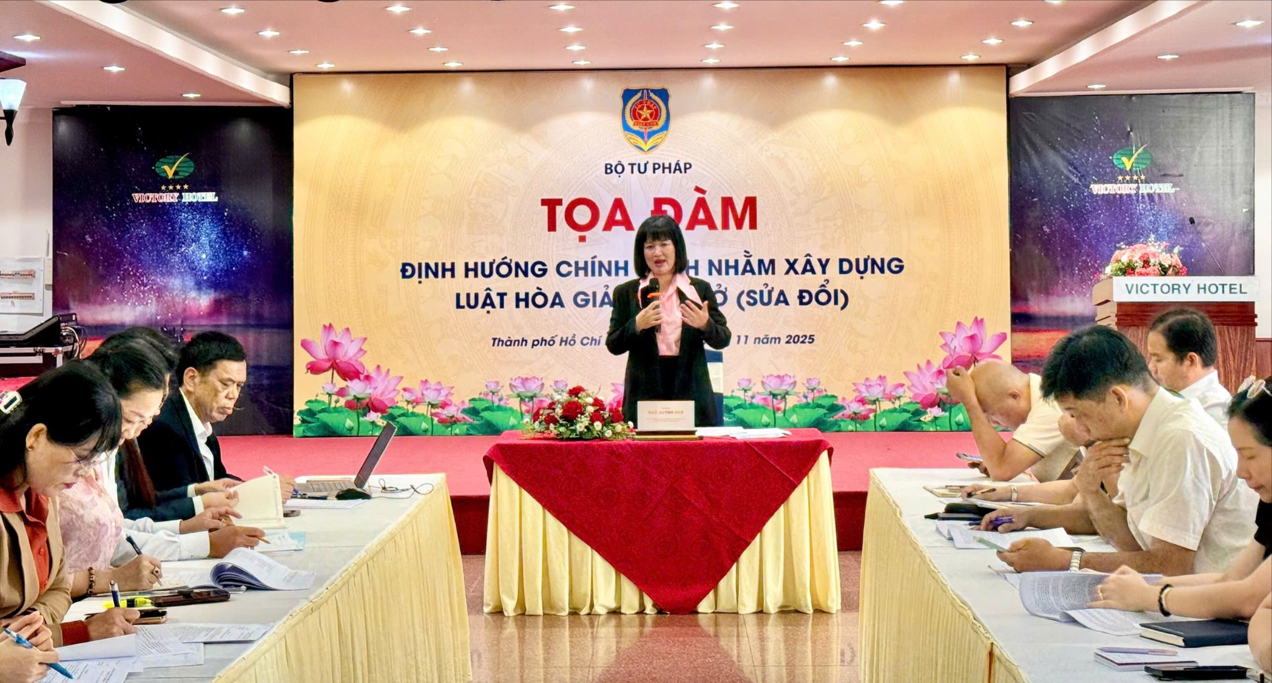 Sáng 25-11, tại TPHCM, Bộ Tư pháp tổ chức Tọa đàm “Định hướng chính sách nhằm xây dựng luật hòa giải cơ sở (sửa đổi)”.