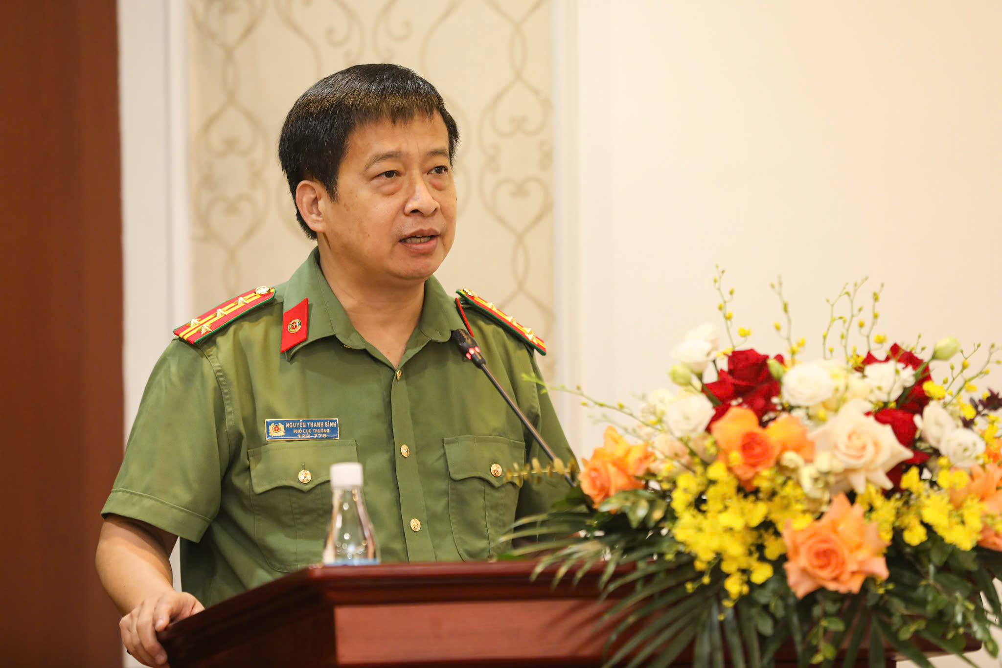 Đại tá Nguyễn Thanh Bình, Phó Cục trưởng Cục Truyền thông Công an Nhân dân, Tổng biên tập Báo Công an Nhân dân phát biểu tại tọa đàm.