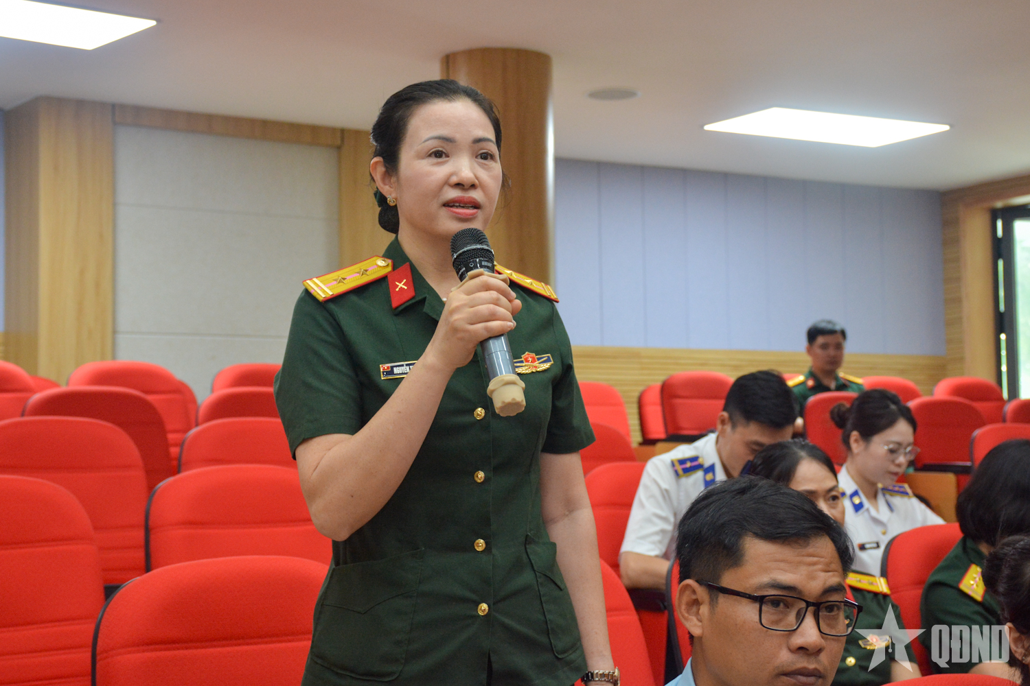Học viên trao đổi, đề xuất với lãnh đạo Văn phòng Bộ Quốc phòng và Ban tổ chức lớp đào tạo.
