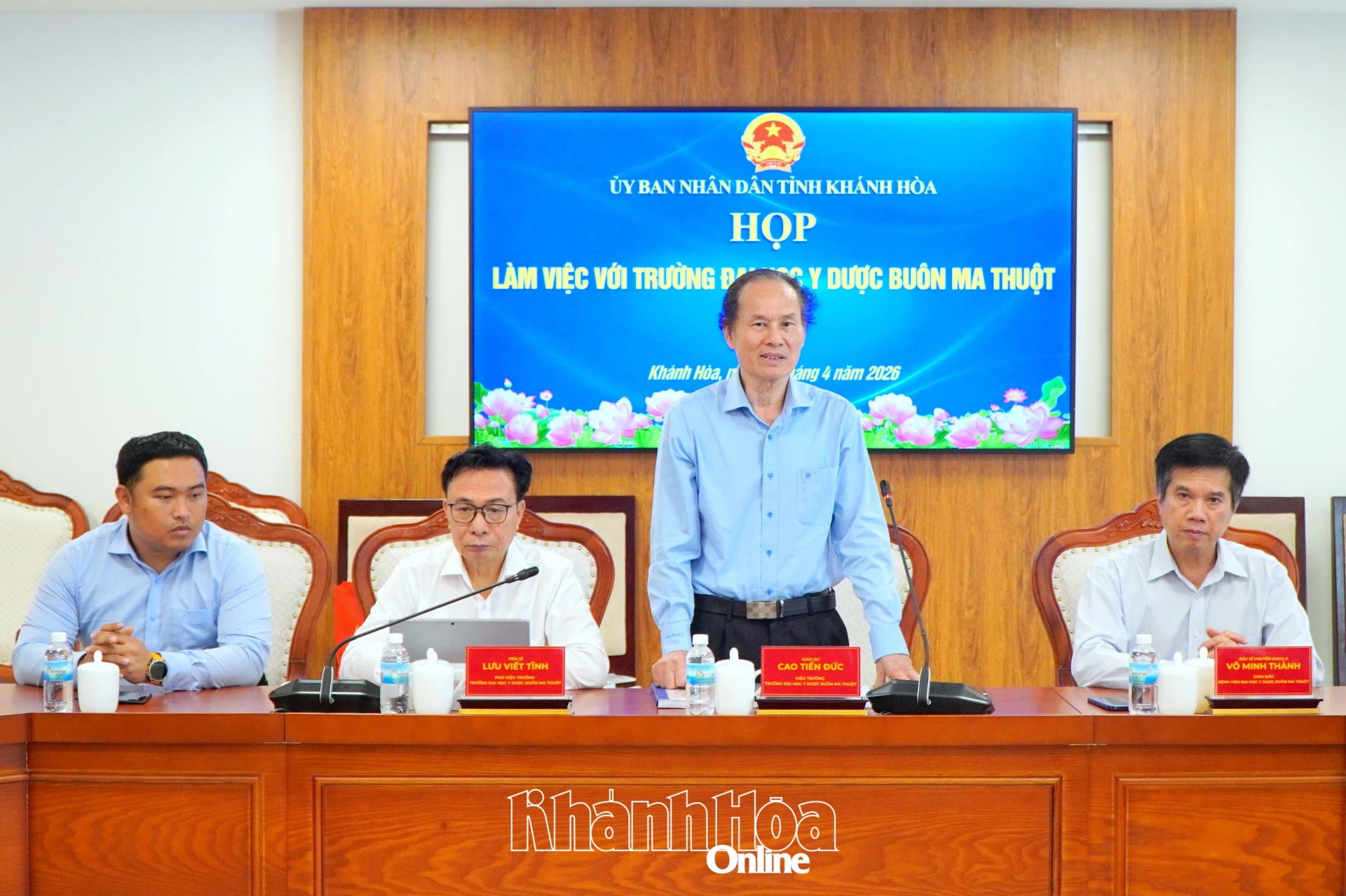 Tại buổi làm việc, lãnh đạo Trường Đại học Y Dược Buôn Ma Thuột đề xuất chủ trương thành lập phân hiệu tại tỉnh Khánh Hòa nhằm phục vụ phát triển nguồn nhân lực y tế vùng Nam Trung Bộ. Theo đề xuất của trường, nếu được chấp thuận, trường sẽ tiến hành triển khai với lộ trình gồm 3 giai đoạn: Khởi động - hoàn thiện pháp lý và triển khai đào tạo ngay từ quý II/2026; đầu tư hạ tầng - chuẩn hóa và mở rộng quy mô từ năm 2027 - 2028; phát triển bền vững - hoàn thiện hệ sinh thái và hội nhập từ năm 2029 - 2030, định hướng đến năm 2045. Trường mong muốn UBND tỉnh chấp thuận chủ trương, có cơ chế về đất đai và ưu đãi đầu tư; kết nối hạ tầng và nguồn lực cơ sở thực hành; thiết lập cơ chế phối hợp liên ngành…