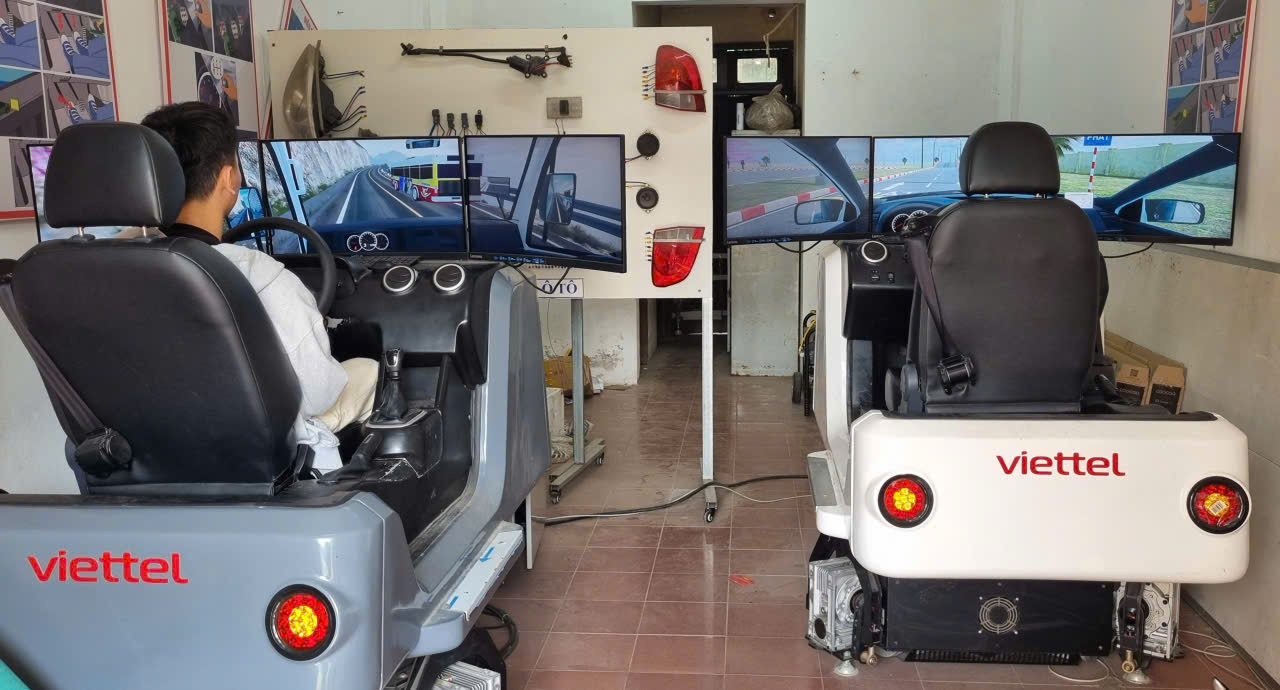 Học viên luyện tập phần mô phỏng. Ảnh: V.LONG