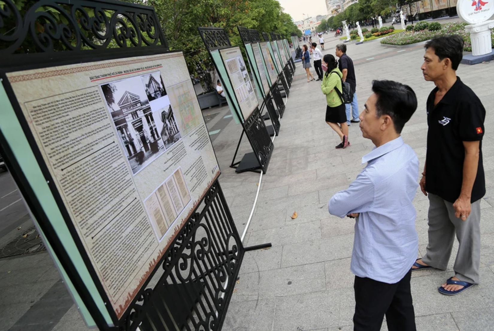 Người dân TP.HCM xem triển lãm kiến trúc Pháp. Ảnh: H.GIANG