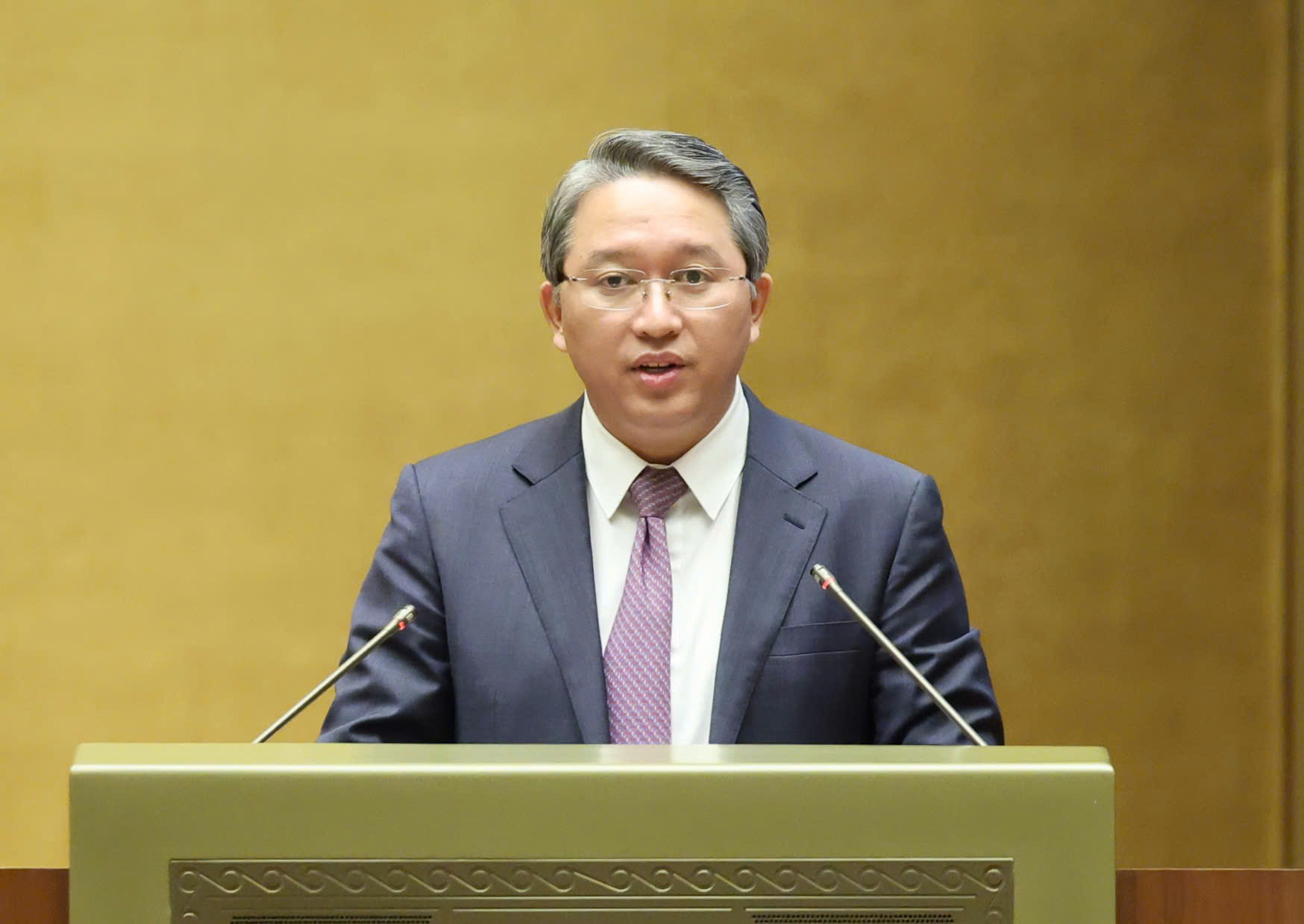Bộ trưởng Bộ Tư pháp Nguyễn Hải Ninh trình bày tờ trình dự thảo nghị quyết, sáng 17-11. Ảnh: QUANG PHÚC