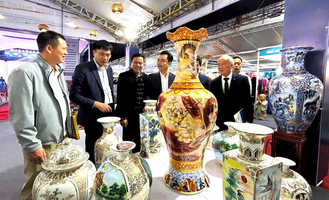 Sản phẩm gốm sứ Bát Tràng đặc sắc được trưng bày tại Triển lãm quảng bá, giao thương kết nối các sản phẩm OCOP, thủ công mỹ nghệ và làng nghề phục vụ du lịch tại xã Bát Tràng.