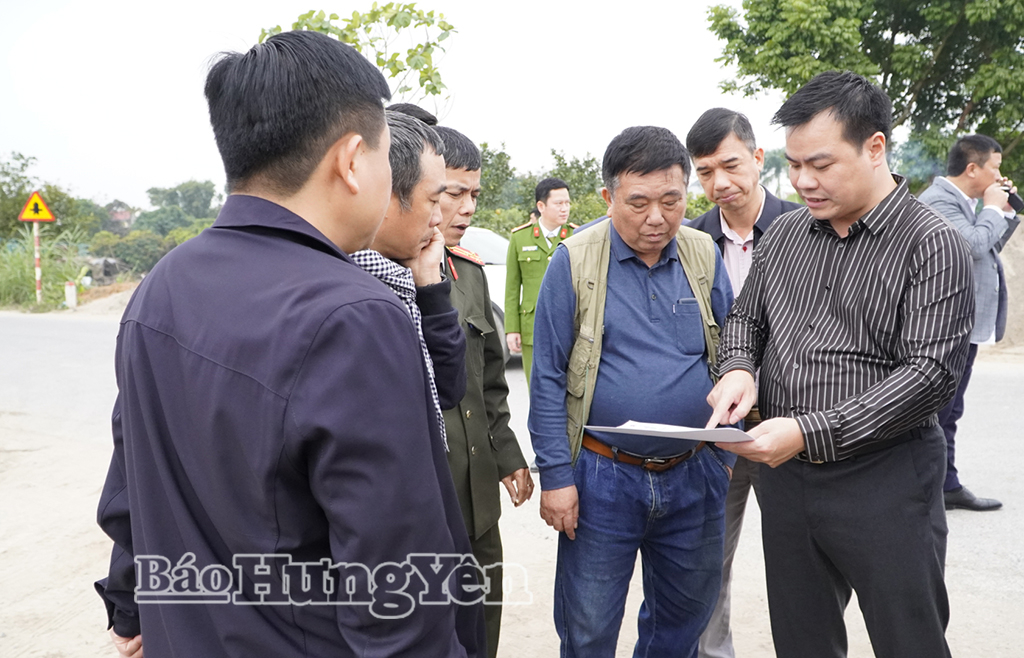 Các ngành, đơn vị liên quan khảo sát vị trí để xây dựng Tượng đài Chủ tịch Hồ Chí Minh trên địa bàn xã Việt Tiến. Ảnh: Báo Hưng Yên