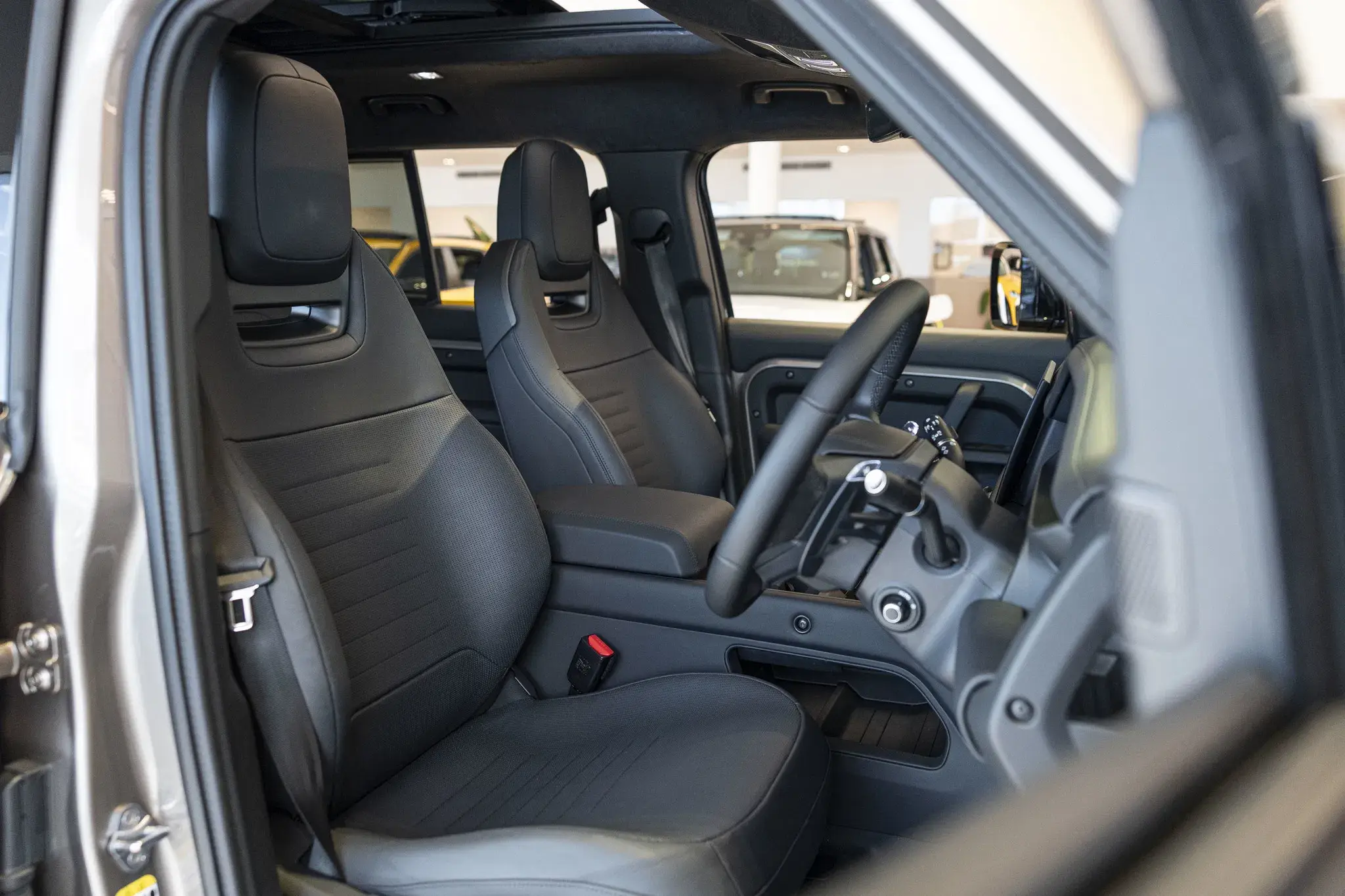 Nội thất của Defender OCTA vẫn mang phong cách đặc trưng của dòng xe địa hình cổ điển, bao gồm thanh chịu lực bảng điều khiển sơn tĩnh điện màu xám Metallic Grey.