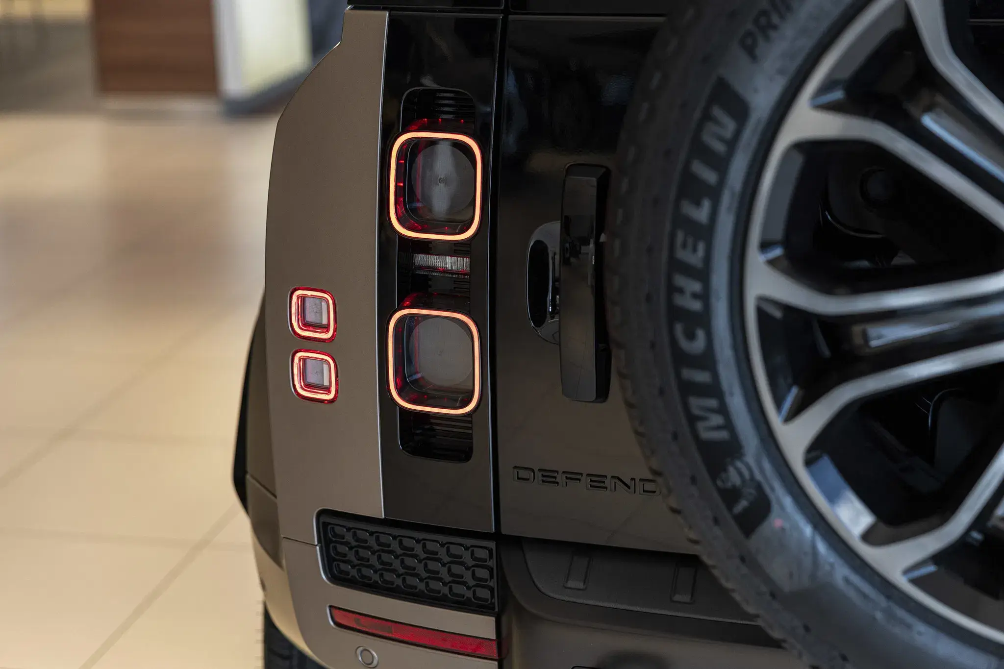 Nhiều chi tiết được sơn tối màu nhằm mang đến hiệu ứng thị giác mạnh mẽ. So với các phiên bản thông thường, Defender OCTA sở hữu cụm ống xả kép lộ thiên.
