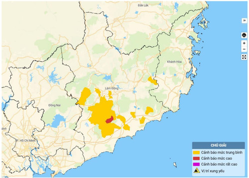 Trong 6 giờ tới, nguy cơ xảy ra lũ quét trên các sông, suối nhỏ, sạt lở đất trên sườn dốc tại tỉnh Lâm Đồng, đặc biệt tại các xã, phường: