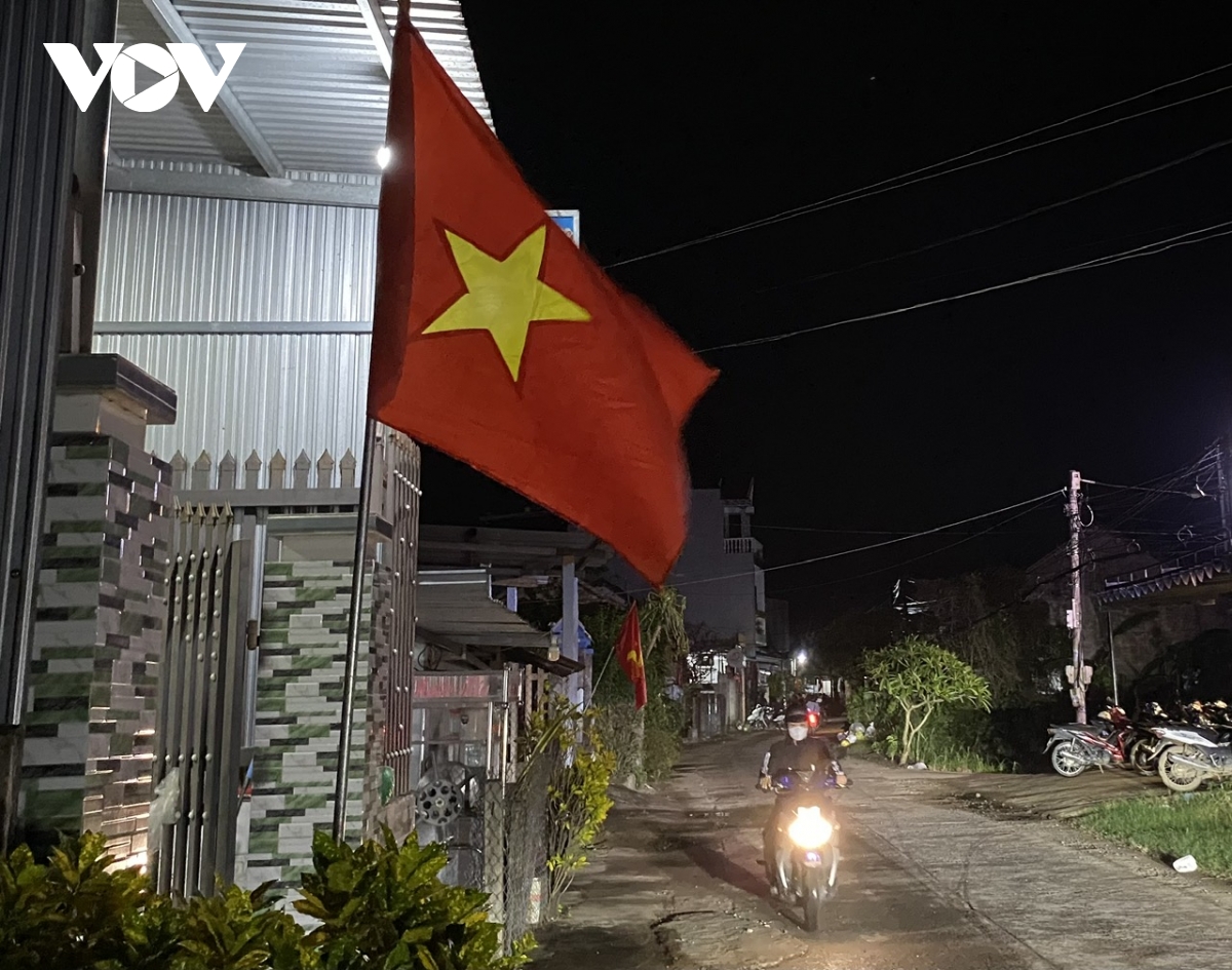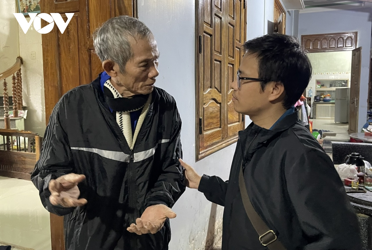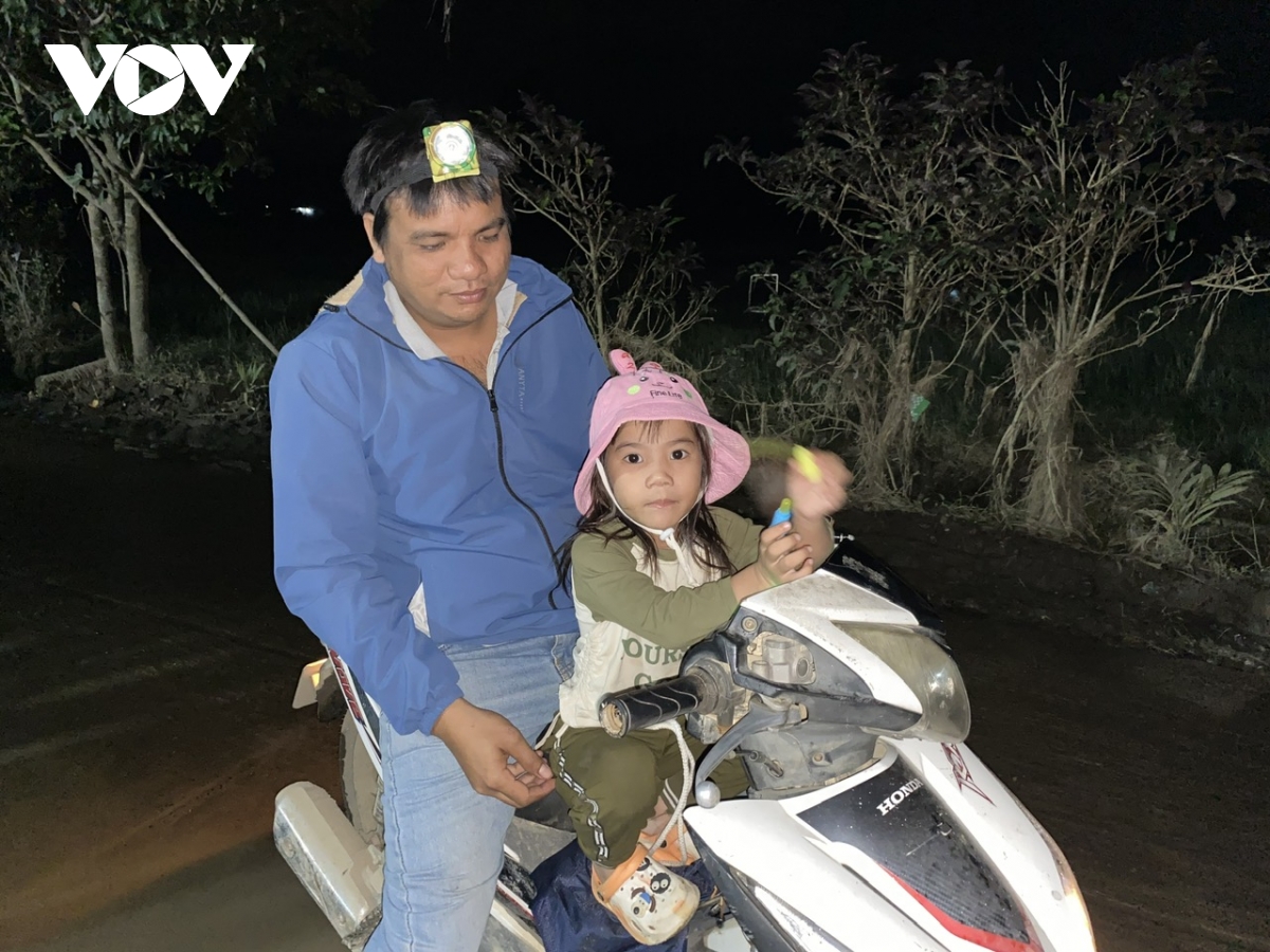 Bé gái "bám" theo bố (anh Nguyễn Văn Khánh) đi khắp thôn trong đêm bình yên đầu tiên. Anh Khánh là Phó trưởng thôn Phú Hữu, bận bịu liên tục 10 ngày qua, hết cứu hộ, cứu nạn rồi chuyển sang giúp điều phối hàng cứu trợ đến người dân.