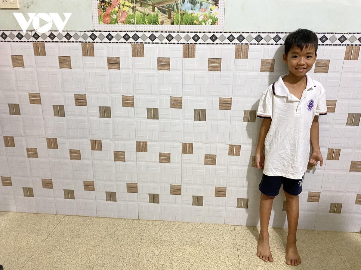 Khó có thể hình dung, ngay tại chỗ này, chỉ cách đây 1 tuần, nước lũ dâng cao gần gấp 3 chiều cao cháu bé, điều chưa từng xảy ra ở nơi đây.