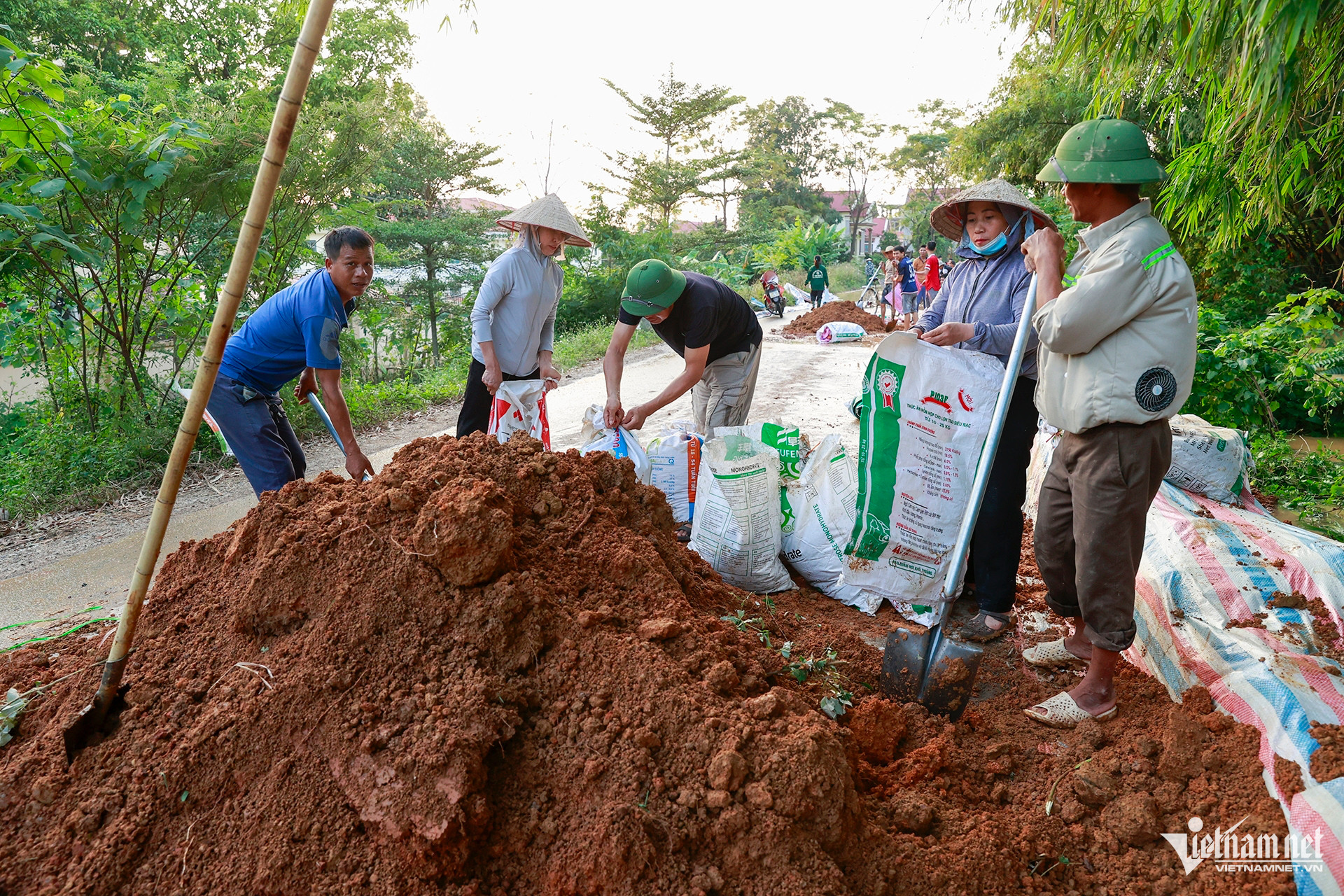 Thầy giáo cho biết, trận bão Yagi năm ngoái “chưa là gì so với trận lụt lần này”. “Toàn tuyến đê Đa Phúc dài khoảng 30km đã được bà con đắp đập, be bờ chắn nước. Toàn dân đều tham gia chống lụt, ai có cuốc, có xẻng, bao tải… đều được huy động triệt để”, thầy Khiêm nói.