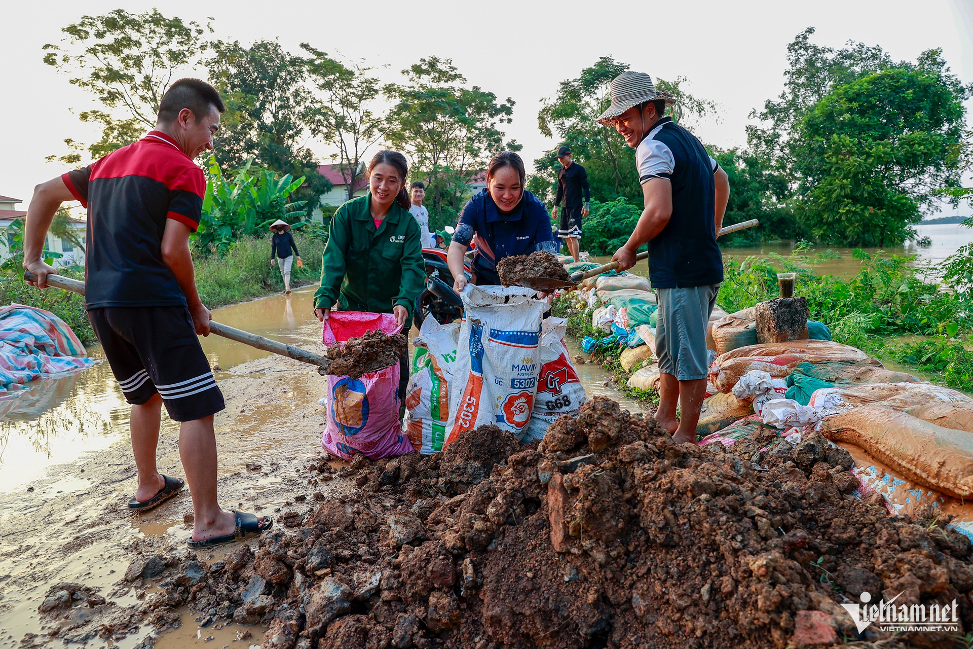 6h ngày 9/10, nước tại hàng chục km đê Tân Hưng (đoạn qua xã Đa Phúc) đã dâng mấp mé mặt đê, chỉ chờ tràn sang bờ bên kia. Hàng trăm bộ đội, dân quân và người dân địa phương vẫn miệt mài vận chuyển đất, đắp bờ bao ngăn nước.