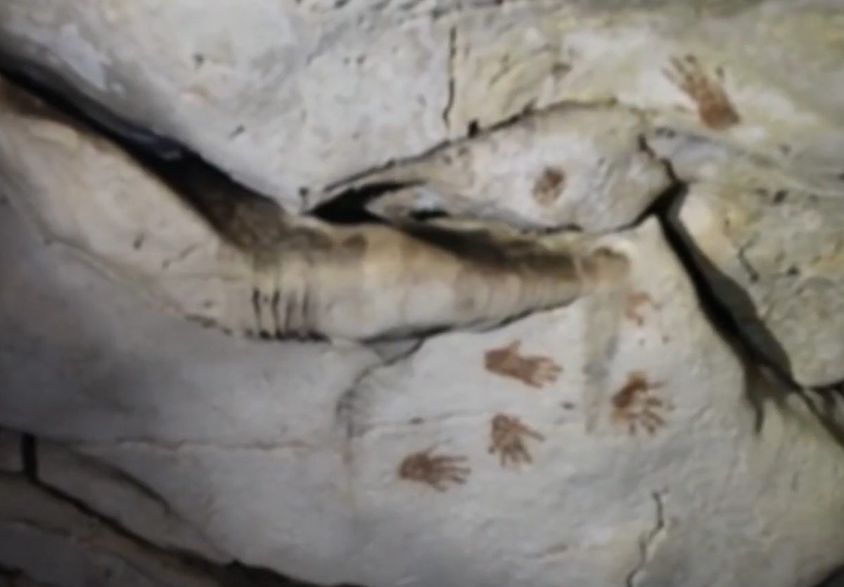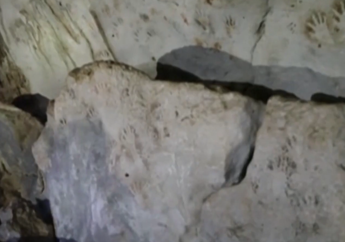 Đó là 137 dấu tay màu đen, đỏ và xám in hàng loạt trên các bức tường hang động ở Bán đảo Yucatan. Ảnh: @Bảo Tàng Quốc Gia Mexico.