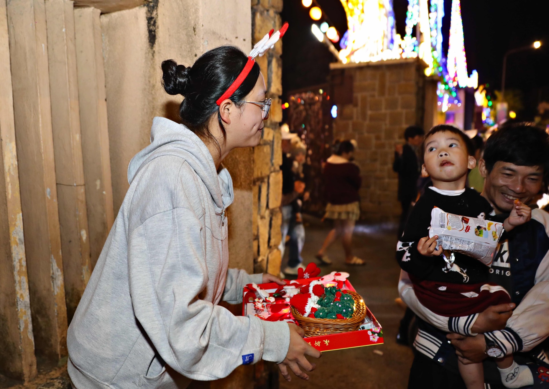 "Ông già noel" phát quà cho trẻ nhỏ trên đường Trần Phú, phường Xuân Hương - Đà Lạt tối 24/12