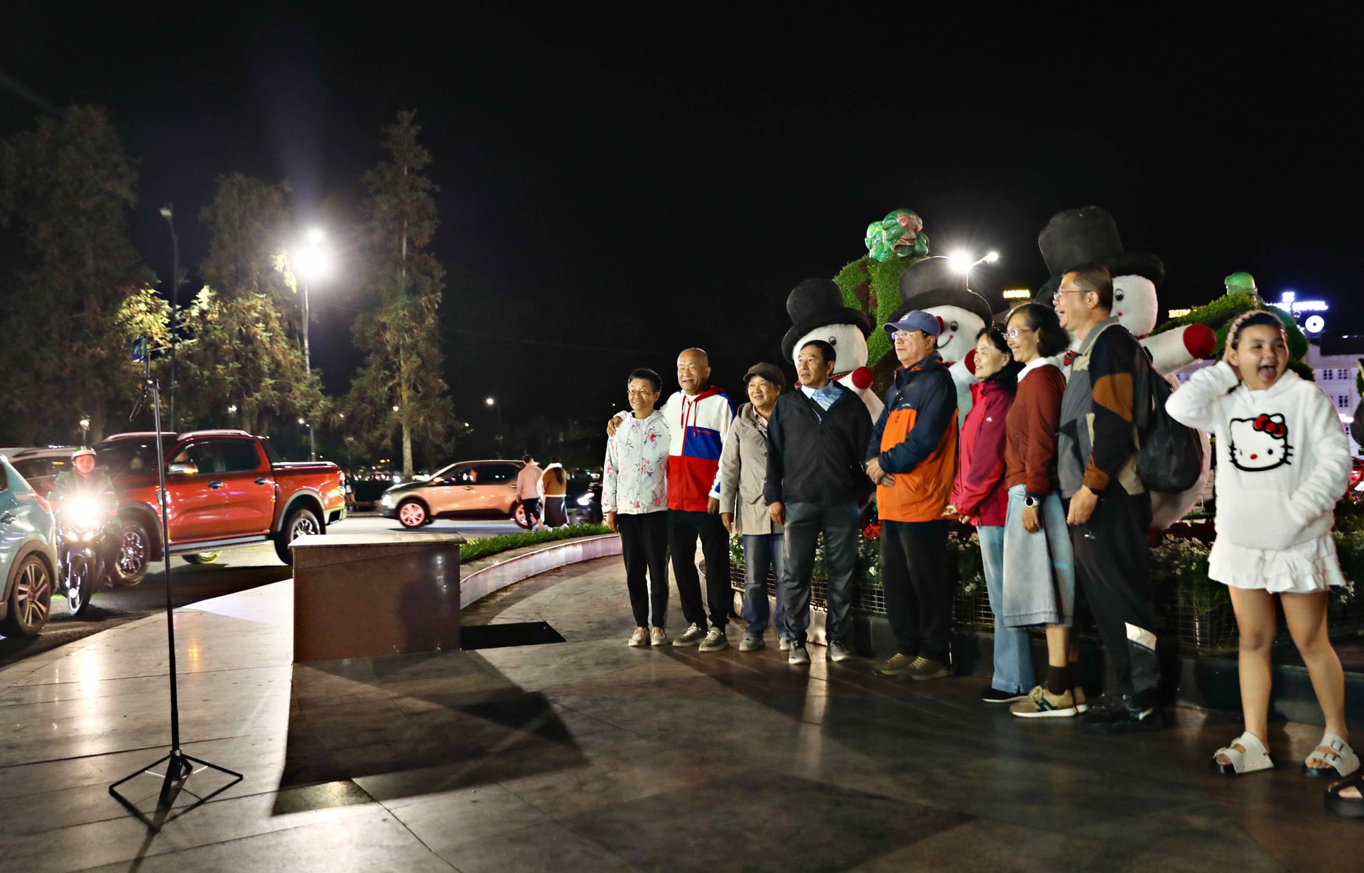 Trung tâm Đà Lạt được trang trí những hình tượng "thành phố âm nhạc" và tiểu cảnh mùa Giáng sinh tại vòng xoay trước khu vực chợ đêm Đà Lạt thu hút người dân địa phương và du khách nước ngoài chụp hình lưu niệm đêm nay