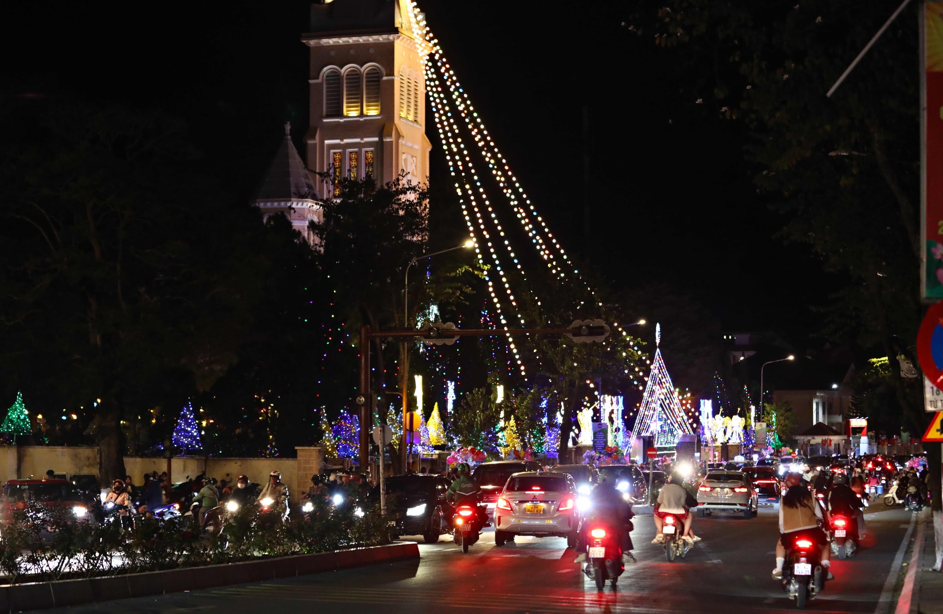 Càng về đêm, lượng người đổ về khu vực Nhà thờ Chính Tòa Đà Lạt trên đường Trần Phú càng nhộn nhịp