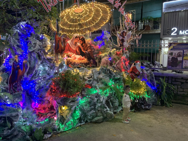 Các em nhỏ thích thú với cảnh quan trang trí lộng lẫy tại các giáo xứ.