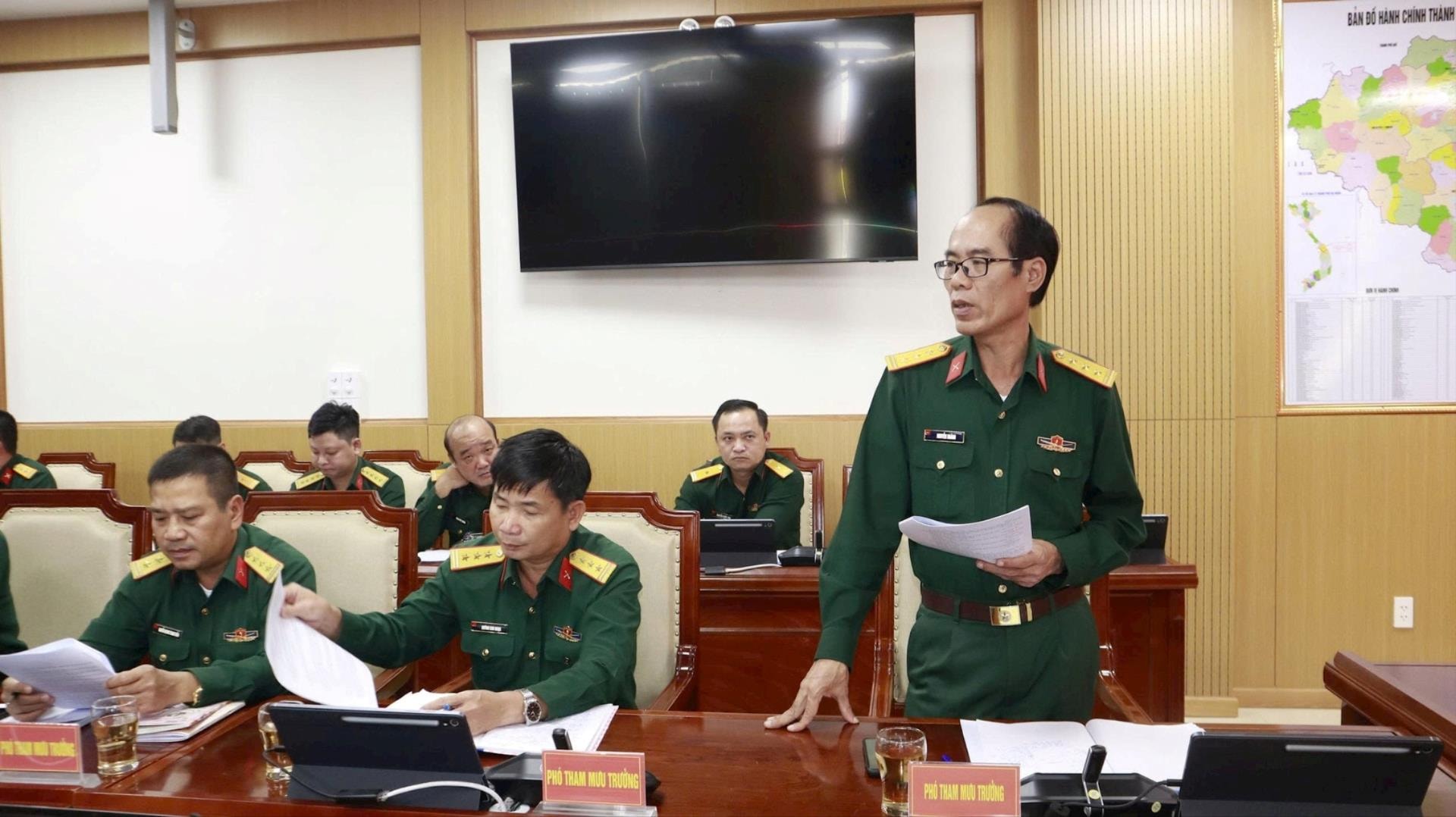 Đại tá Trần Quang Chánh – Phó Chỉ huy trưởng kiêm Tham mưu trưởng Bộ CHQS thành phố chủ trì triển khai nhiệm vụ đến các cơ quan, đơn vị liên quan.