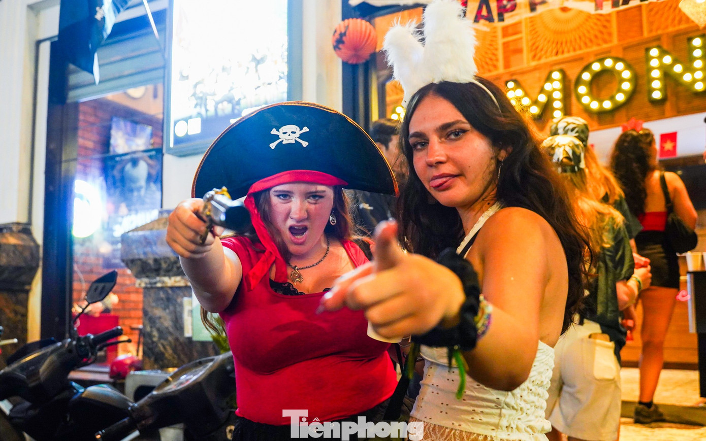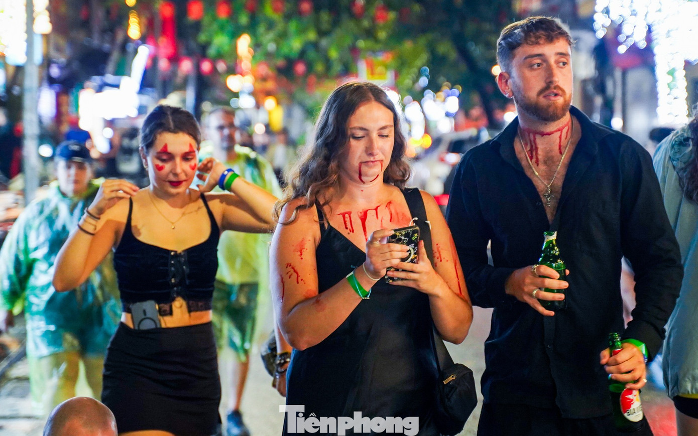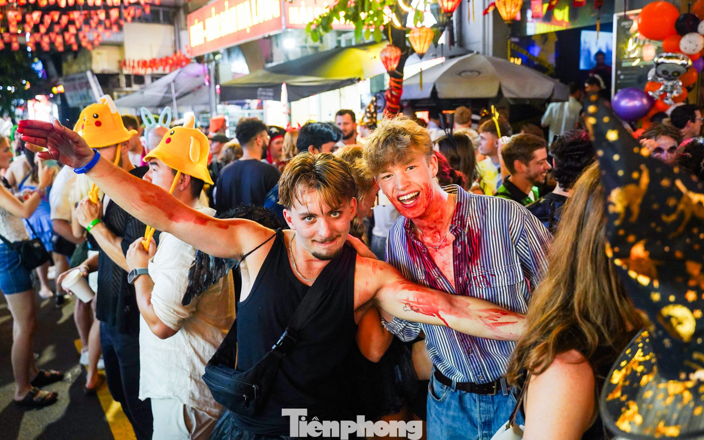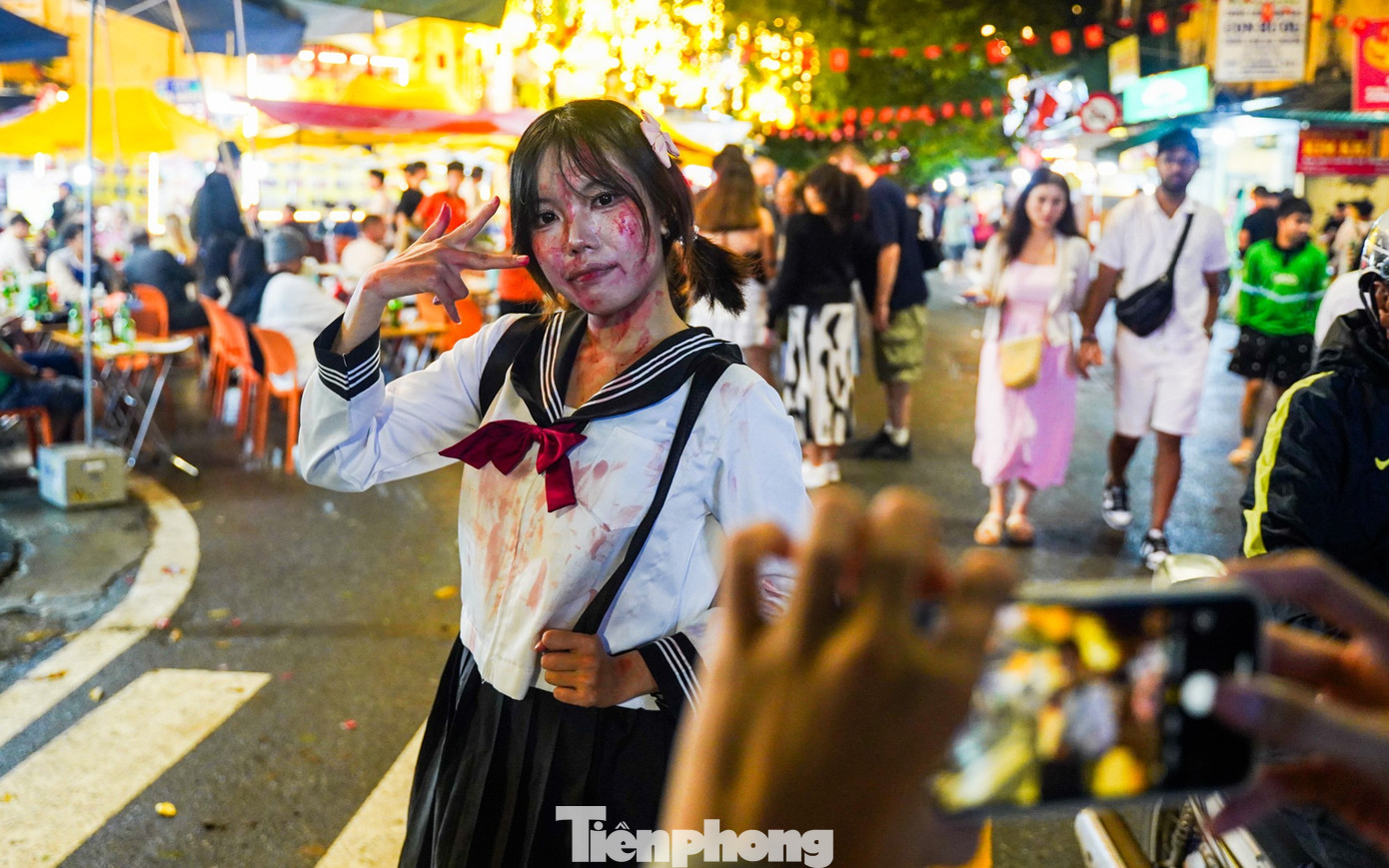 Nhiều du khách nước ngoài tỏ ra thích thú, liên tục chụp ảnh và check-in cùng những người hóa trang ma mị trong đêm hội Halloween.