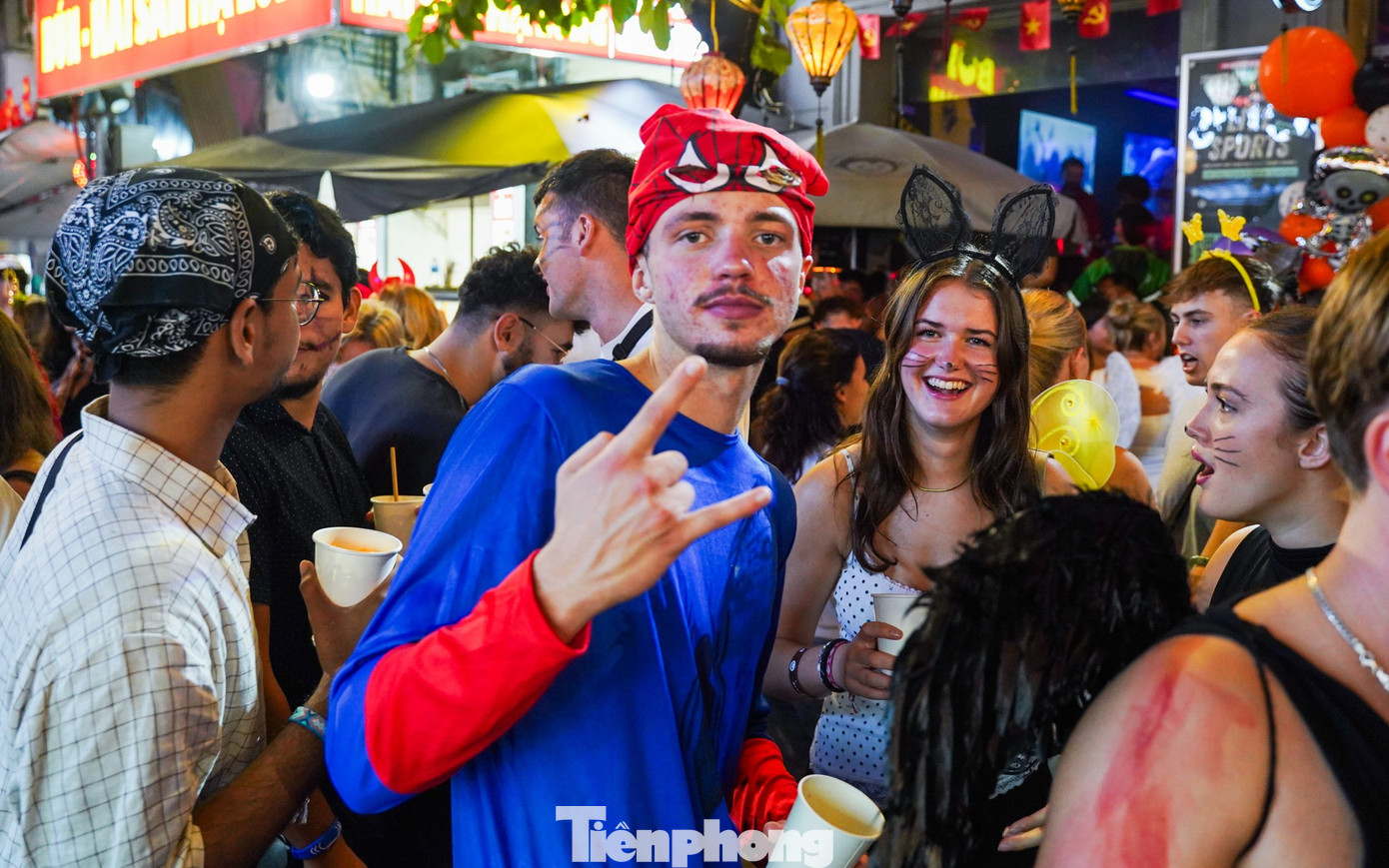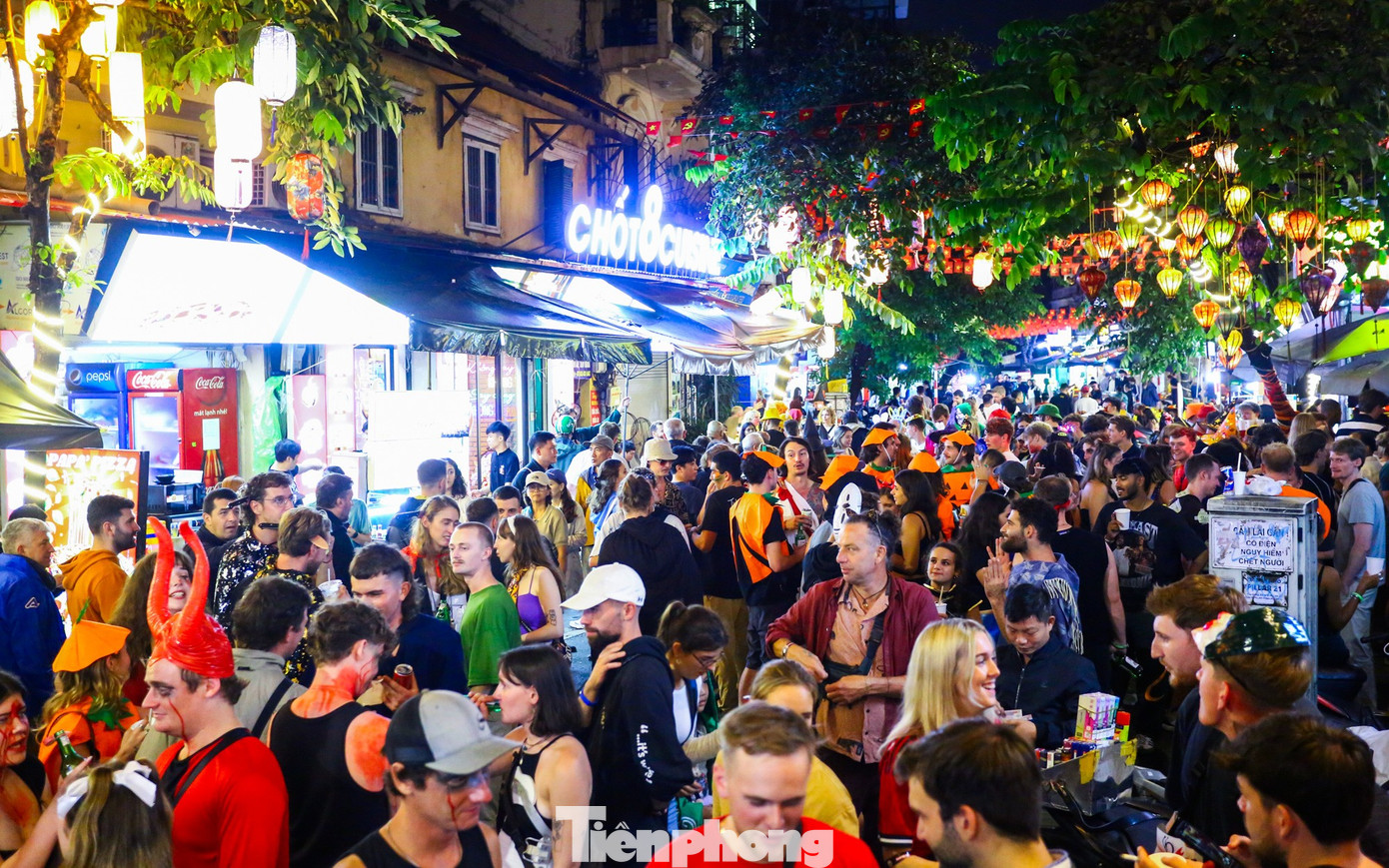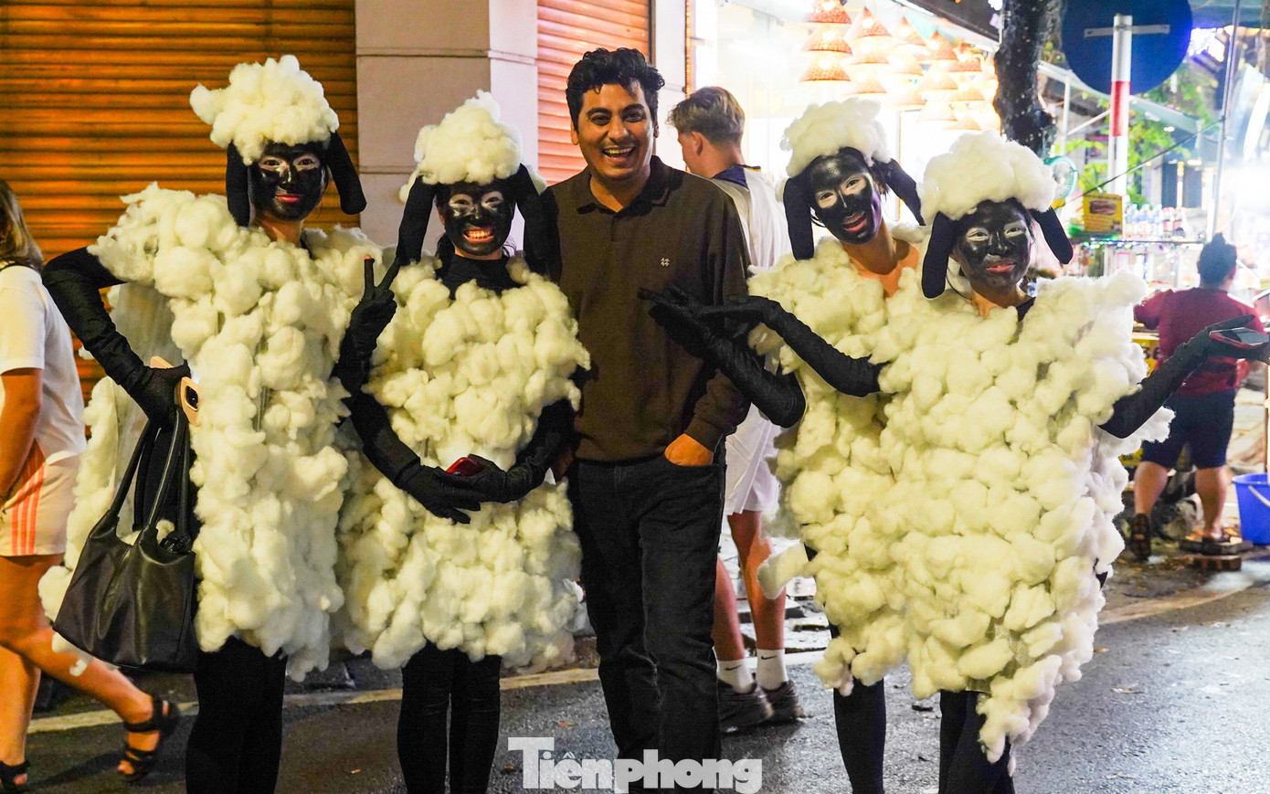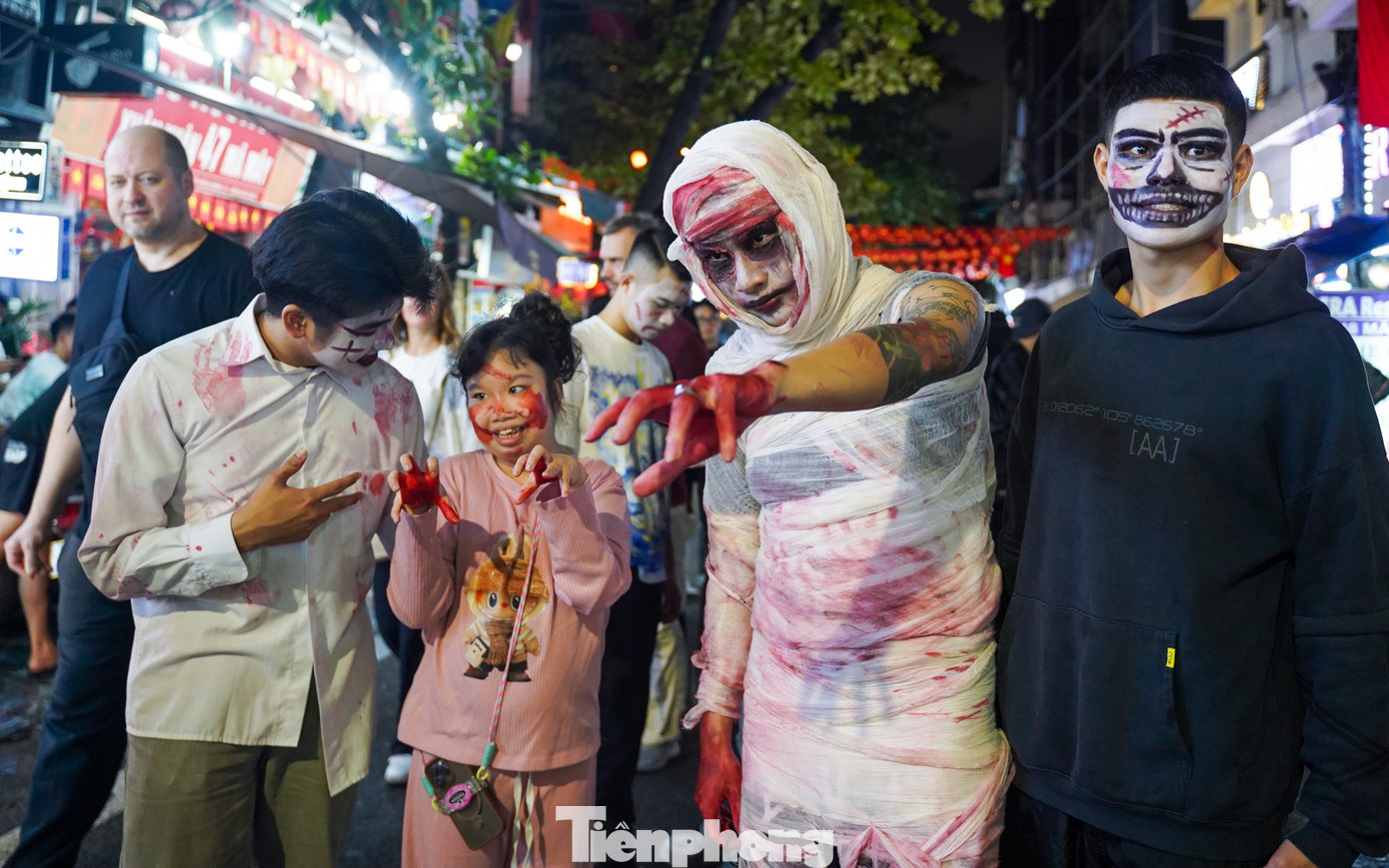 Nhiều du khách nước ngoài tỏ ra thích thú, liên tục chụp ảnh và check-in cùng những người hóa trang ma mị trong đêm hội Halloween.