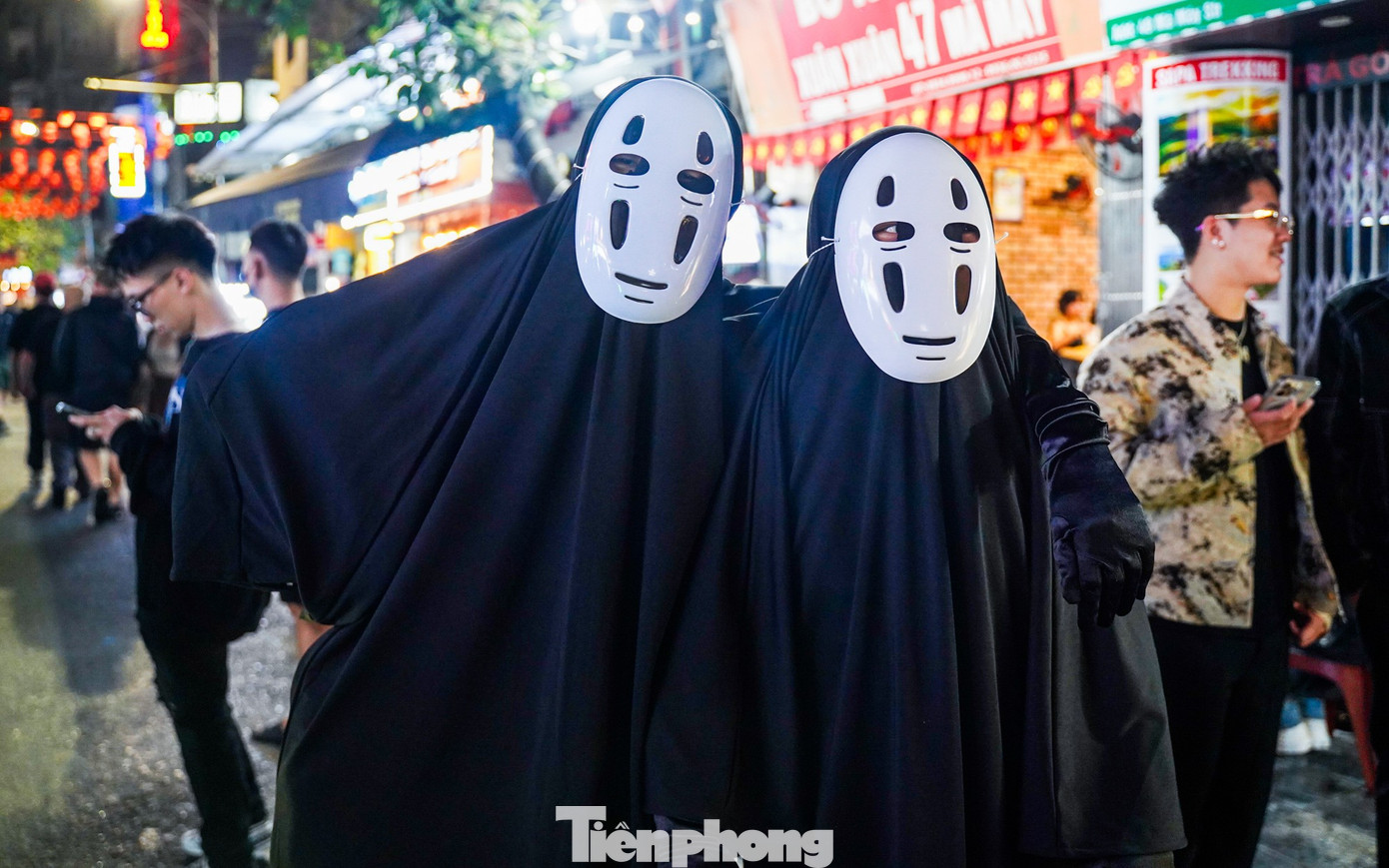Dòng người trong những bộ trang phục ma mị, đủ kiểu dáng tạo nên không gian đông đúc, rực rỡ sắc màu nhưng vẫn đậm chất kinh dị.