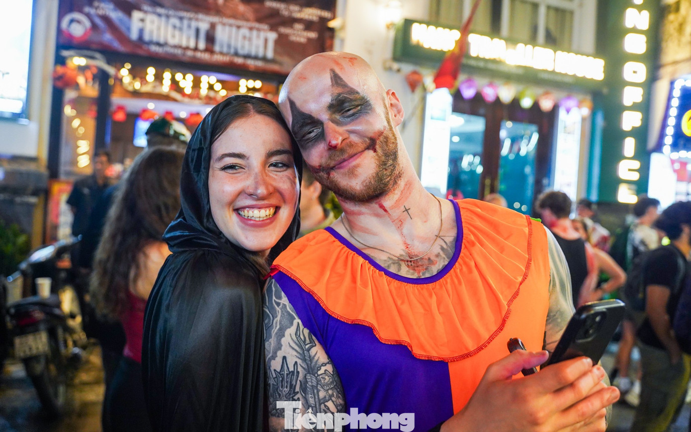 Vợ chồng chị Hale (Mỹ) bất ngờ trước không khí sôi động của đêm Halloween ở Hà Nội. “Thật sự rất đông, mọi người hóa trang đủ kiểu, từ đáng sợ đến hài hước”, chị Hale chia sẻ.