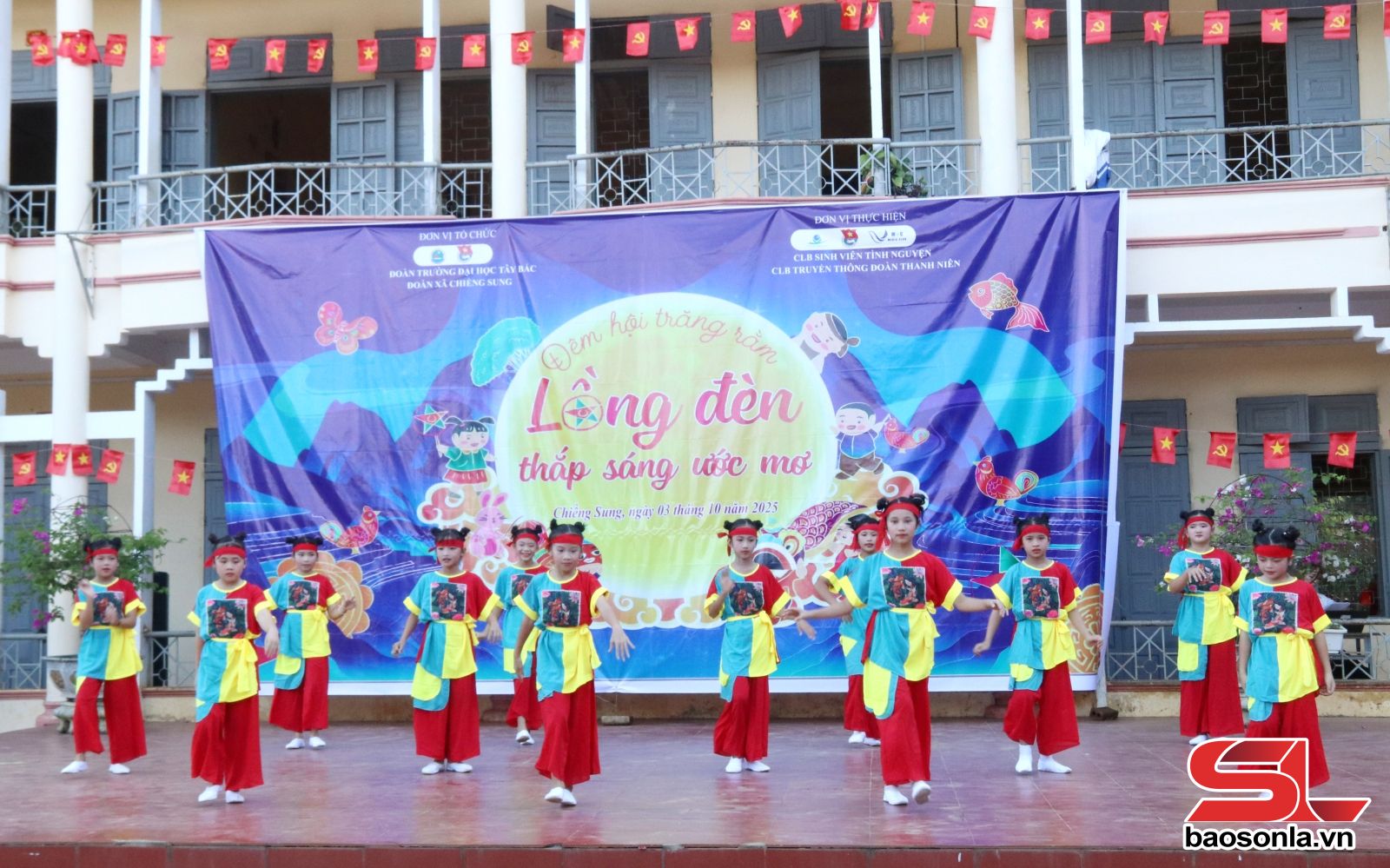 Tại đêm hội, các em học sinh được nghe lãnh đạo xã đọc thư của Chủ tịch nước gửi các cháu thiếu niên, nhi đồng nhân dịp tết Trung thu năm 2025; thưởng thức các tiết mục hát, múa, nhảy hiện đại và các màn hoạt náo của chú Cuội, chị Hằng Nga, múa lân...