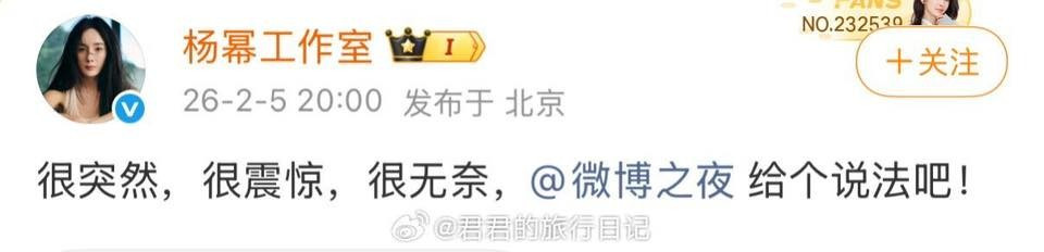 Giữa cuộc chiến căng, tài khoản Weibo của phòng làm việc Dương Mịch đăng trạng thái tag thẳng ban tổ chức: "Rất bất ngờ, rất bàng hoàng, rất cạn lời, @Sina giải thích đi". Động thái không nể nang, lên tiếng ngay lúc sự kiện diễn ra từ đoàn đội của nữ diễn viên khiến fan hả hê trong khi "người qua đường" "bật ngón cái" khen độ ngầu xứng tầm đội ngũ ngôi sao hàng đầu, lăn lội nhiều năm trong giới "không ngán ai". Trạng thái từ tài khoản phòng làm việc của Dương Mịch cũng thay cho lời phủ nhận cô "tranh C vị".