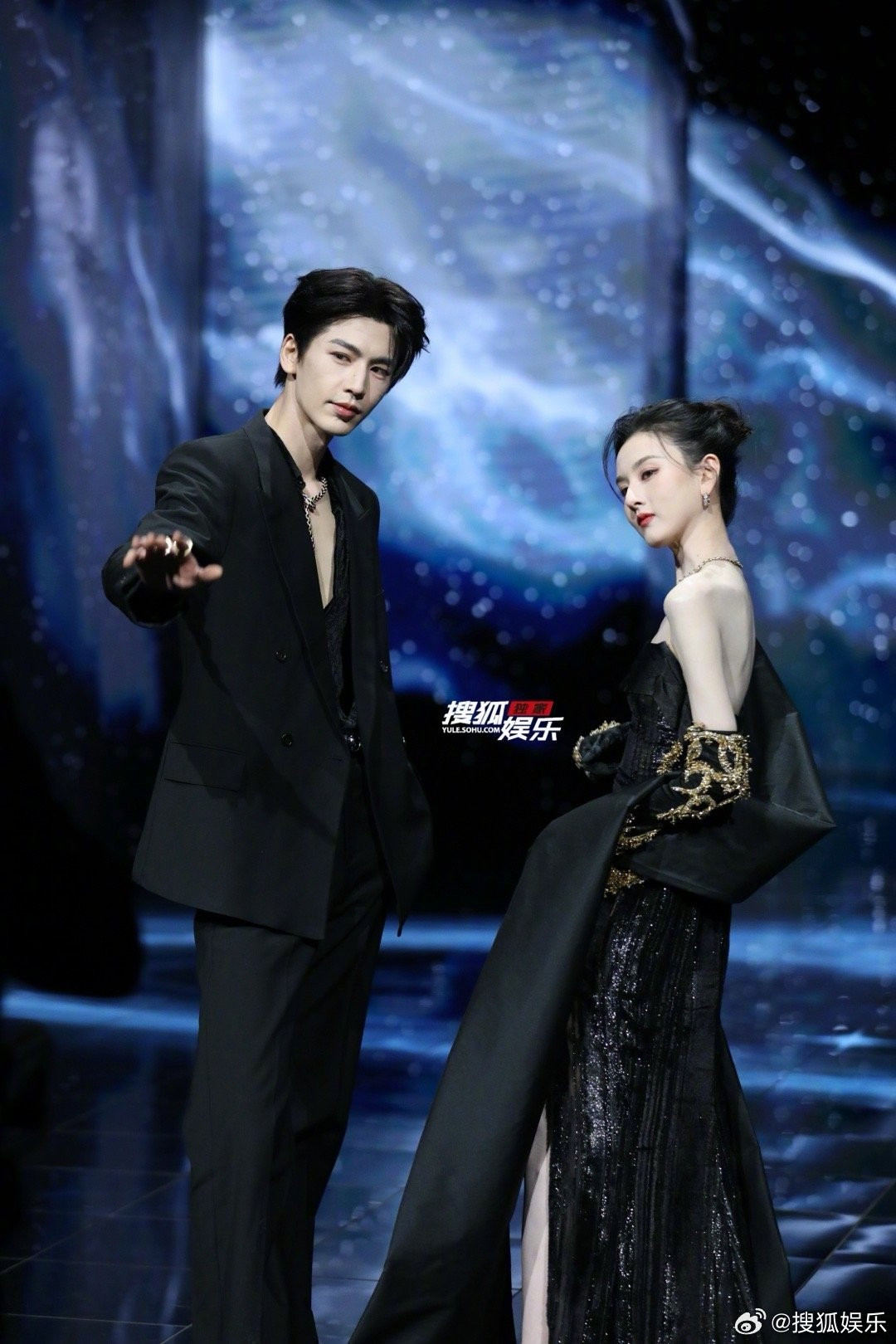 Phe "nửa kín nửa hở" lại trùng hợp là những nam thần thuộc top visual của thế hệ. Trương Lăng Hách tạo thành tổ hợp nhan sắc đỉnh cao chấn động khi đi thảm đỏ với Tống Tổ Nhi. Anh diện trang phục của Gucci, phần xẻ ngực quyến rũ đã khéo khoe chiếc vòng "nhà rắn" BVLGARI.