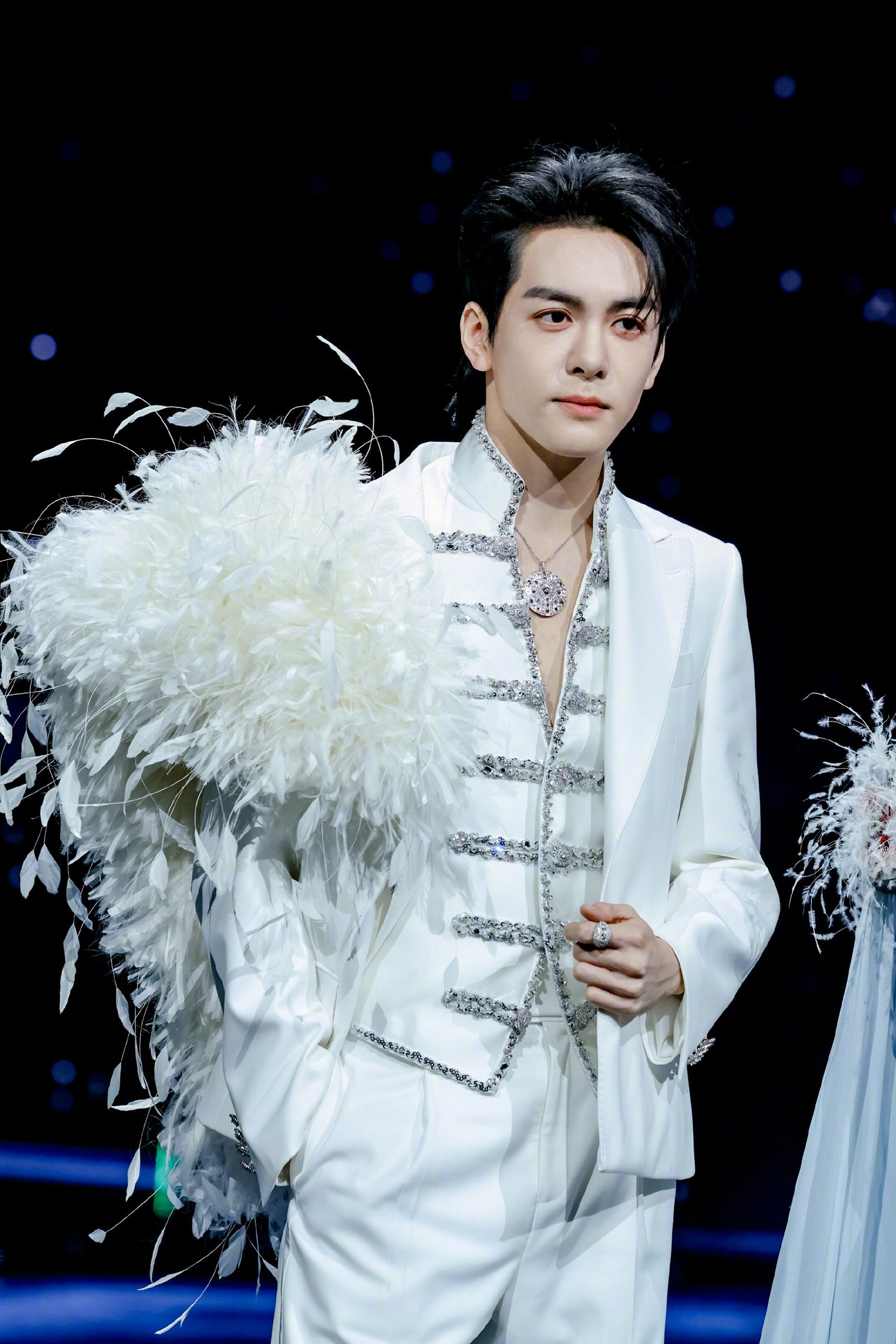 Thảm đỏ ngân hà nhưng cũng giống như tuyết rơi trong đêm khi Bạch Kính Đình xuất hiện, trùng khớp với concept tạo hình nam diễn viên tung ra trước đó.