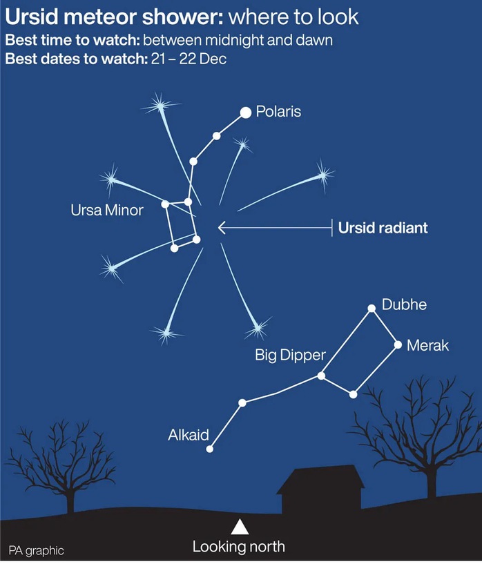 Theo trang Time and Date, dự kiến mưa sao băng Ursids sẽ giải phóng khoảng 10 ngôi sao băng mỗi giờ vào giai đoạn cực đại, xảy ra vào đêm 22, rạng sáng 23-12 đối với người quan sát từ Việt Nam.