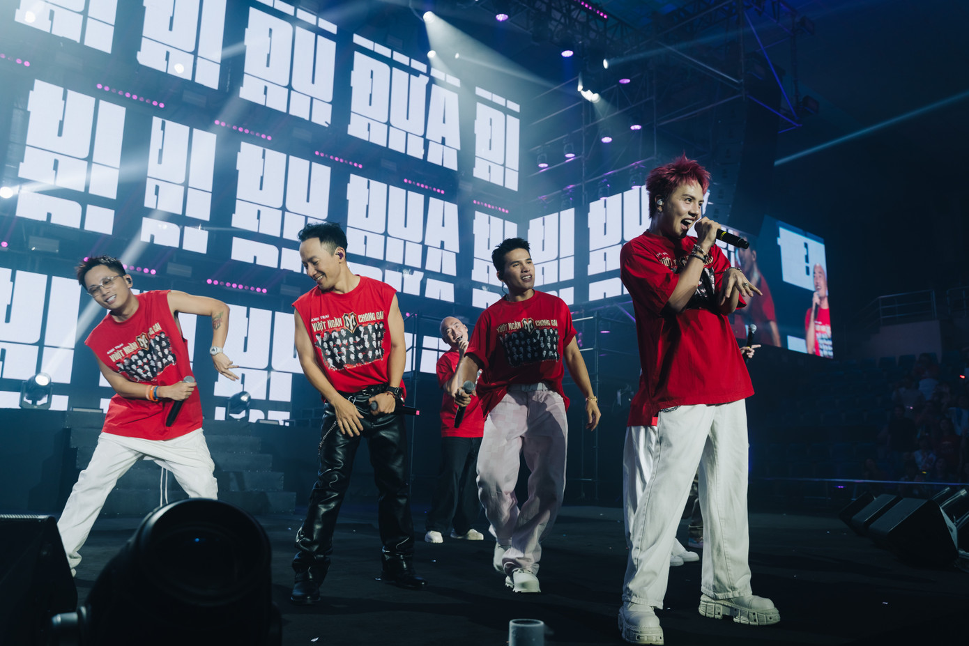 Tối 29/10, hàng nghìn khán giả tại Nhà thi đấu Nguyễn Du hòa cùng đêm nhạc Tôi! Người Việt Nam. Chương trình không cát-xê, nhằm quyên góp cho đồng bào vùng lũ miền Trung. Trong vài giờ, các nghệ sĩ kêu gọi được gần một tỷ đồng. Trong ảnh là tiết mục Đi đu đưa đi, do các nghệ sĩ Rhysmatic, Tiến Đạt, Quốc Thiên và Duy Khánh trình bày.