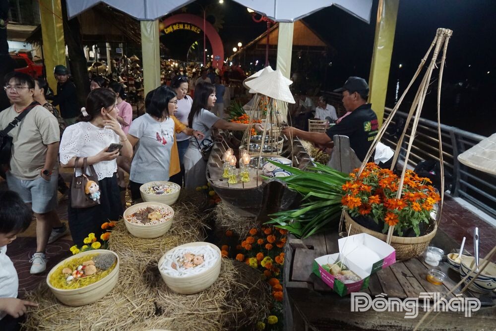 Không gian văn hóa Sa Đéc xưa được tái hiện sinh động với các gian hàng ẩm thực và đặc sản địa phương tại khu vực sự kiện.