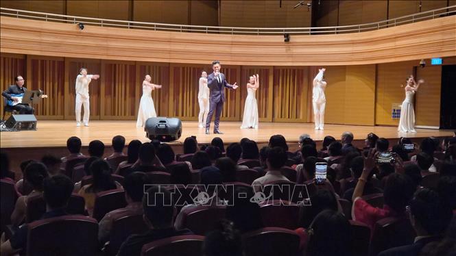 Ca sĩ Đức Tuấn trình diễn tại đêm nhạc. Ảnh: Việt Dũng/PV TTXVN tại Singapore
