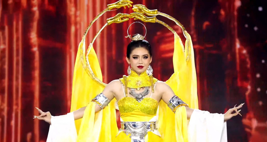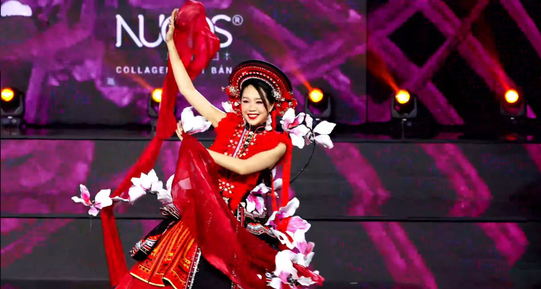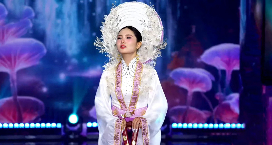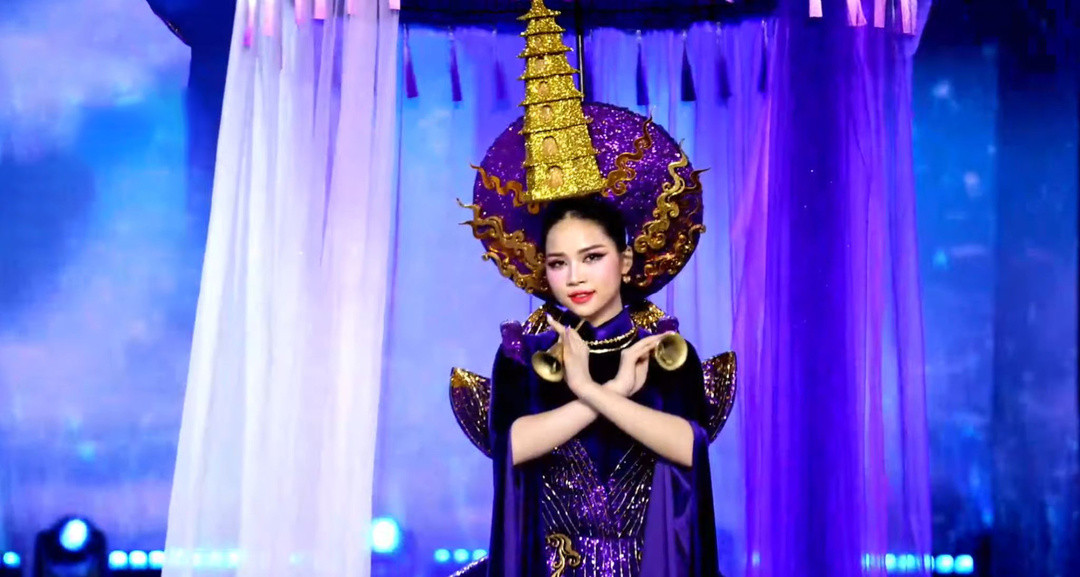 Á hậu 1 Miss Grand Vietnam 2024 - Lê Phan Hạnh Nguyên múa tay uyển chuyển trong trang phục “Điệu hát thần tiên”.