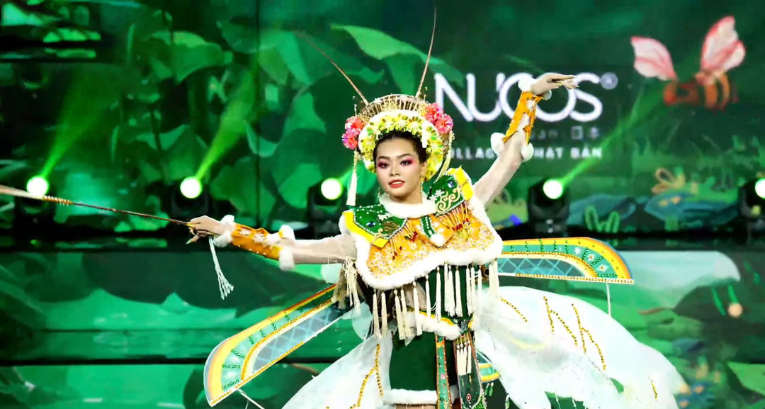 Thí sinh Võ Nguyễn Gia Hân gặp sự cố hy hữu trên sân khấu khi trình diễn thiết kế “Tết Tày nêu hội”. Do đung đưa quá mạnh, phần cây nêu (tre) dài phía sau lưng cô bất ngờ bị gãy, khiến người đẹp lo lắng và bối rối trong khoảnh khắc ấy.