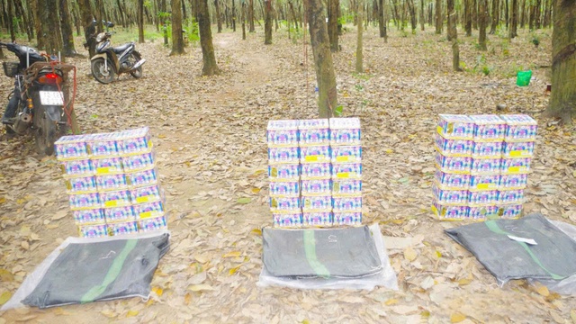 Trước đó, chiều 8/12, Đồn Biên phòng Cửa khẩu quốc tế Hoa Lư phối hợp Công an xã Lộc Thạnh phát hiện, bắt giữ 2 đối tượng sử dụng xe máy vận chuyển 36 hộp pháo hoa nổ không rõ nguồn gốc, tổng trọng lượng hơn 64kg, đưa vào nội địa tiêu thụ.