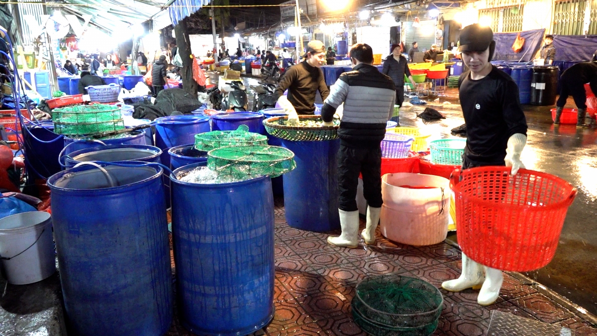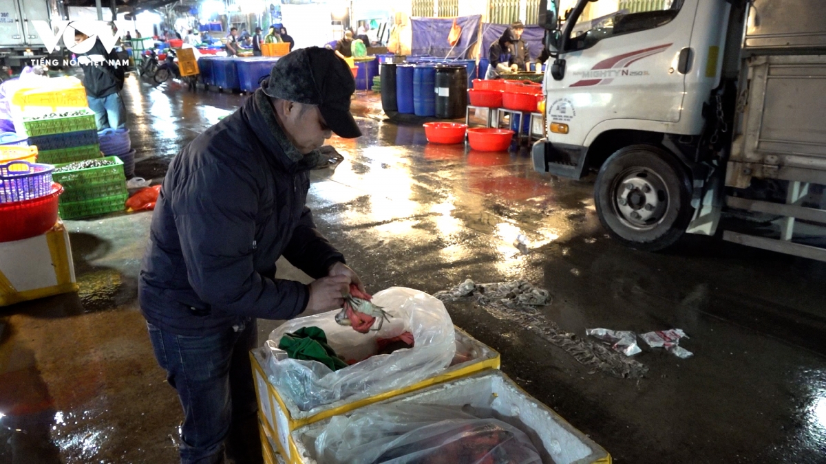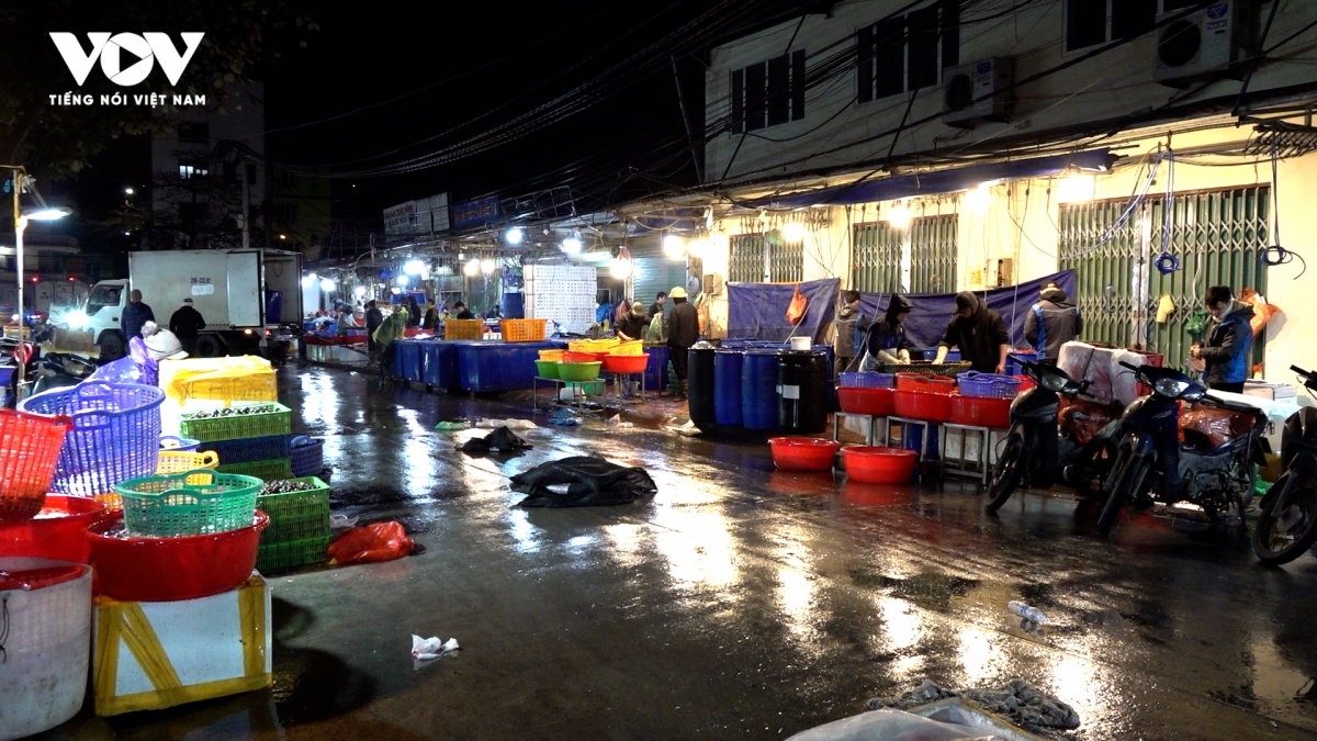 Khi phần lớn người dân đã chìm vào giấc ngủ, tiểu thương chợ đầu mối Long Biên bước vào thời điểm làm việc chính. Dưới ánh đèn vàng, hàng trăm lao động vẫn miệt mài với guồng quay công việc dưới tiết trời chỉ khoảng 10 độ C.