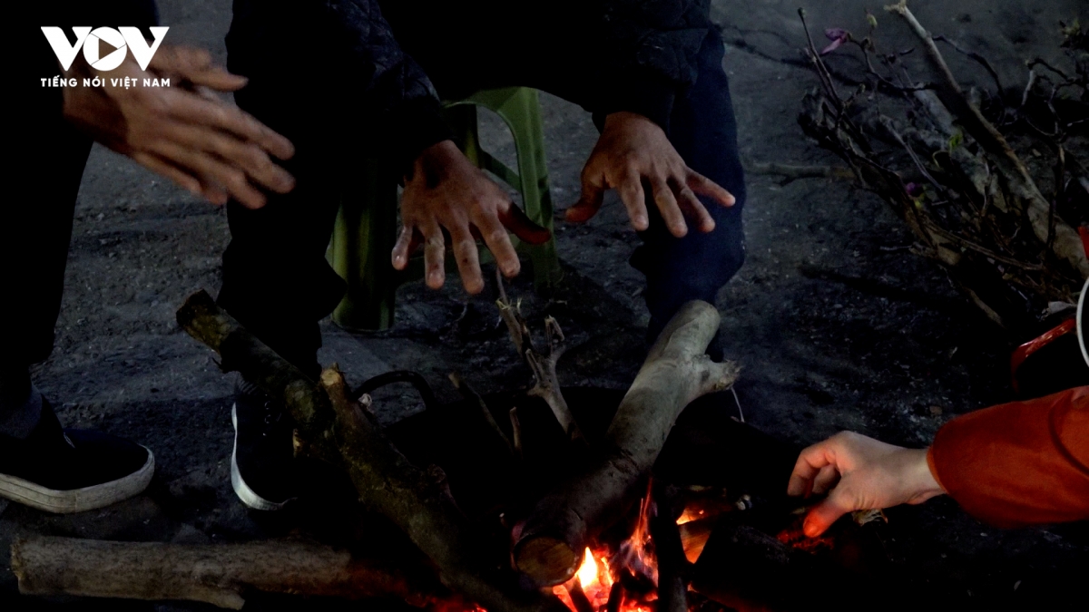 Những đống lửa nhỏ giúp người lao động xua đi bớt cái lạnh đêm đông.